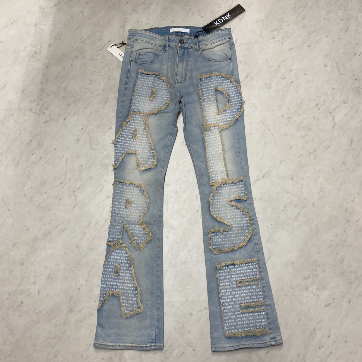 USA正規品 【W34/L36】 KDNK ディーケーエヌケー Stacked Skinny Flare スタックド スキニーフレア ジーンス モノグラム Paradise (JNS53)