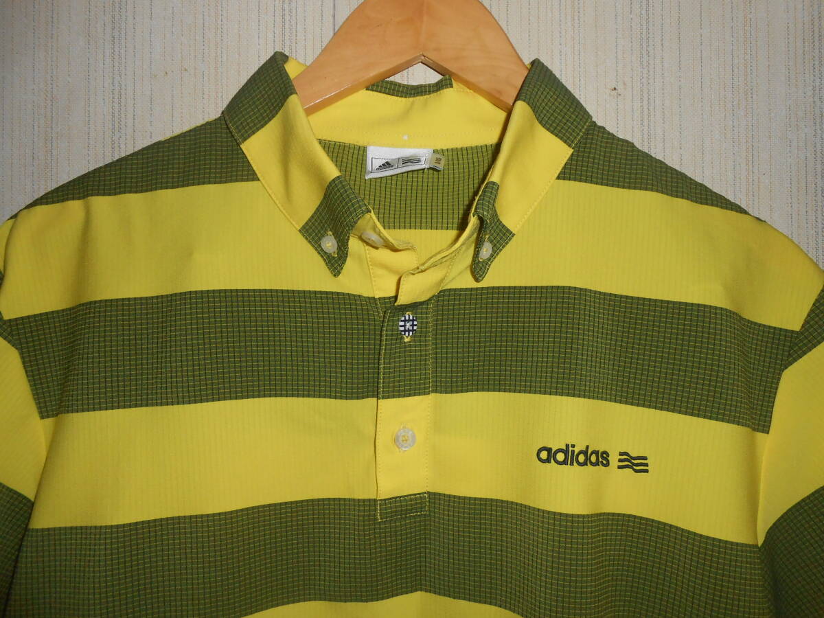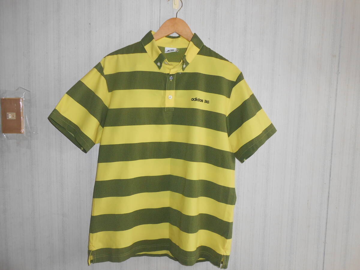 美品adidasアディダスゴルフボーダー柄半袖ポロシャO(LL))