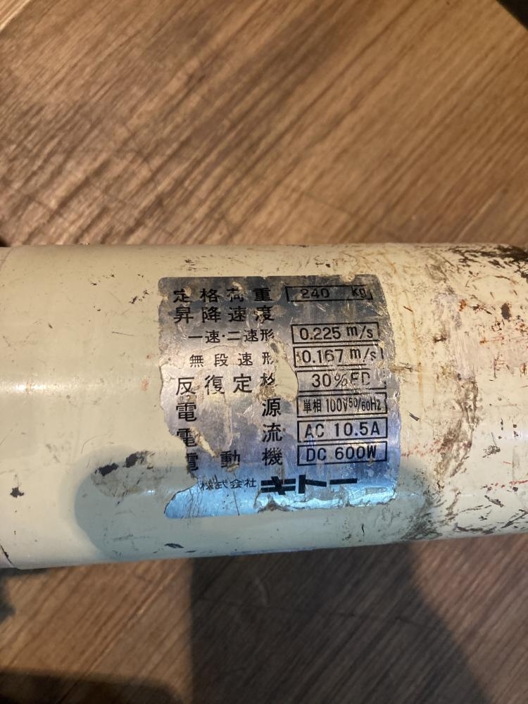 c ■商品状態 240kg リモコン1つ付属 通電、チェーンの上下動のみ確認済みです。 傷や汚れが多くございます。 実際の作業手順に沿った動作確認は環境がないため行っておりませんのでご了承下さい。 [電動工具に関して] 通電のみ確認済みです。 [バッテリーが付属している商品に関して] 中古品のため、バッテリー残量に関しての保証は出来かねます。 [エア工具に関して] エアを通しての確認済みです。 [エンジン工具に関して] エンジン始動のみ確認済みです。 こちらの商品は50Hz/60Hz共用仕様となります。 店頭買取後、店頭にて展示販売も同時にしておりますため、傷汚れ等が増えている場合も御座います。 ■付属品 写真が全てになります ■管理番号 240023011567 |