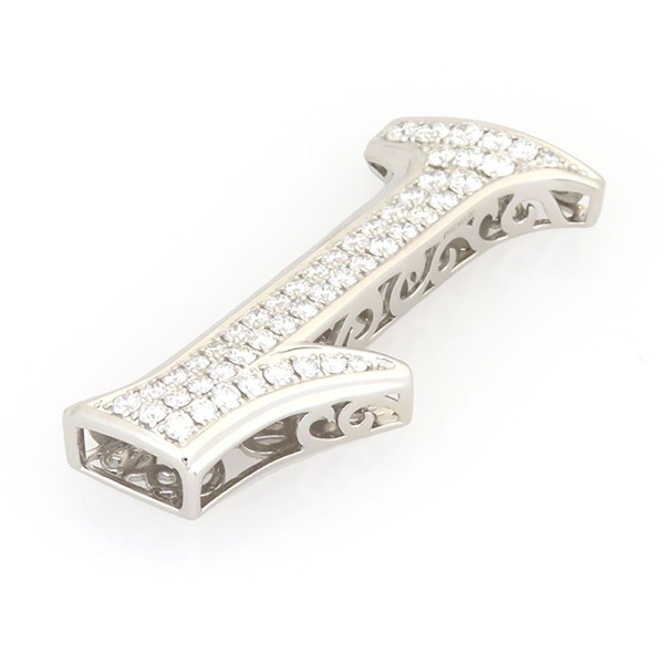 商品説明 | 数字の「1」をモチーフにした大きめペンヘッドです。普通の大きさでは物足りない、胸元に大きなアクセントが欲しい方にピッタリです。質の良い3カラット分のダイヤモンドを贅沢に使用しております。 |