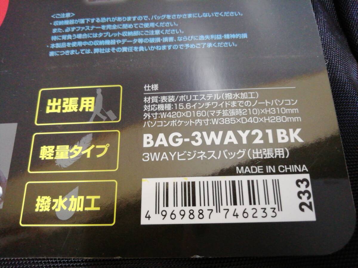 こちらの商品は【未使用・保管品】SANWA   3WAY ビジネスバッグ (出張用) BAG-3WAY21BK  ブラックの出品です。