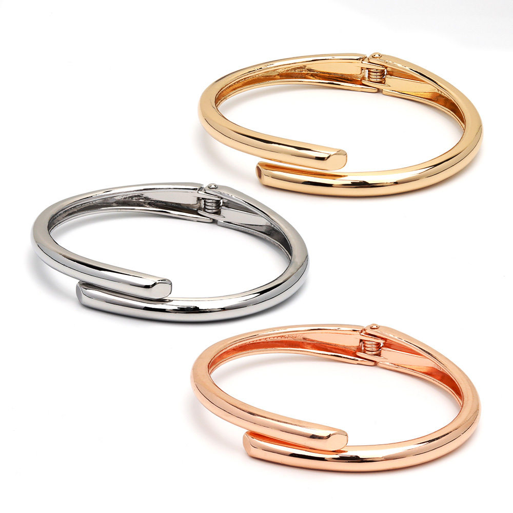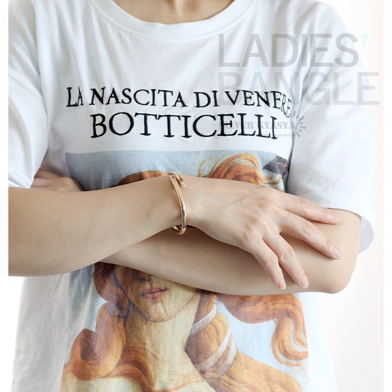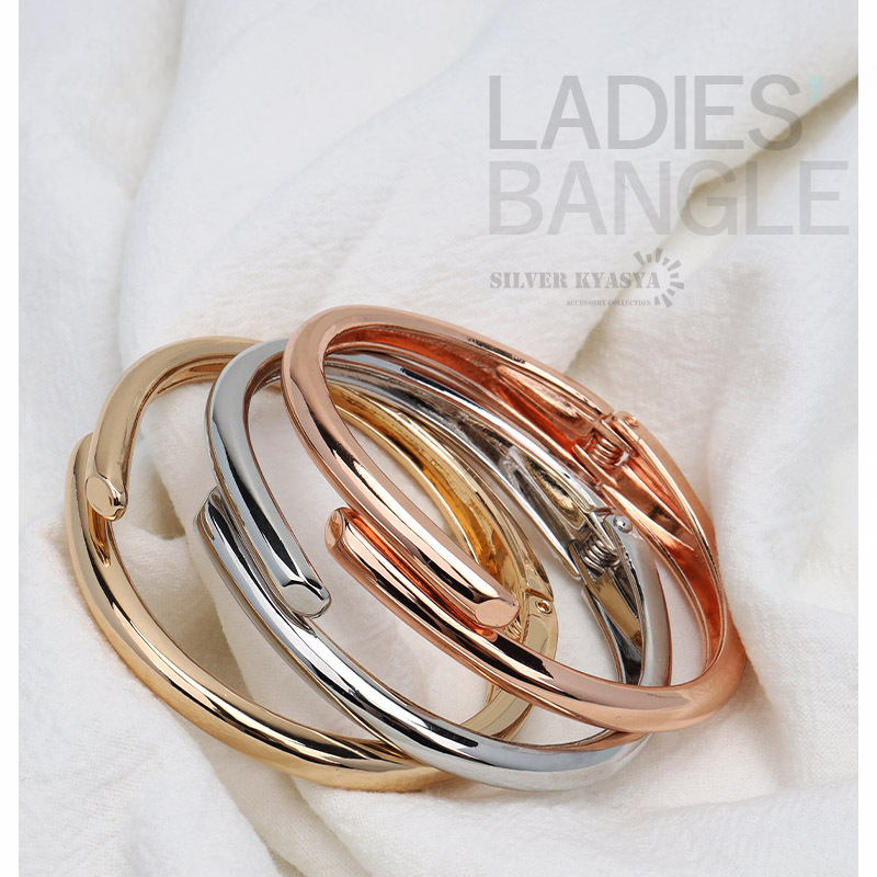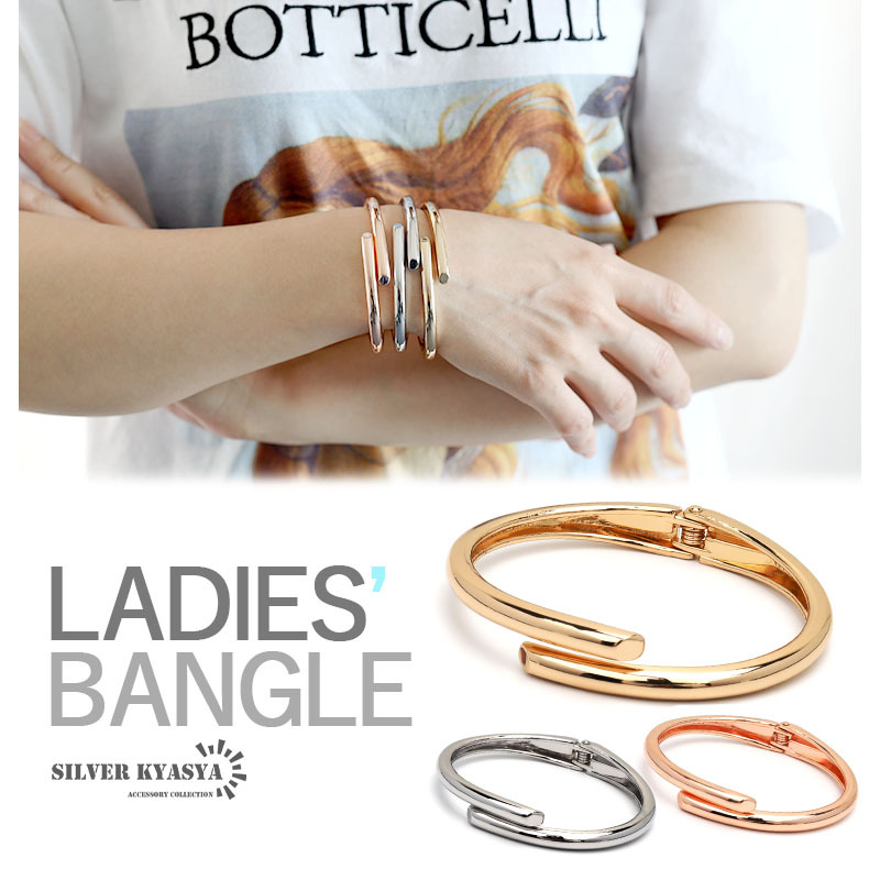 シンプルなデザインの細身バングル。単体でつけても重ね付けにも使えるアイテムです。ゴールド/シルバー/ローズゴールドの3カラー展開。
