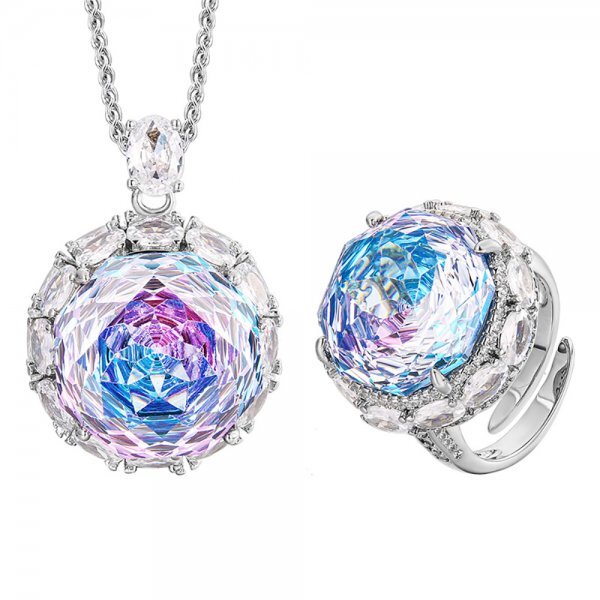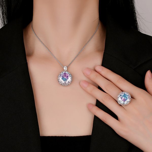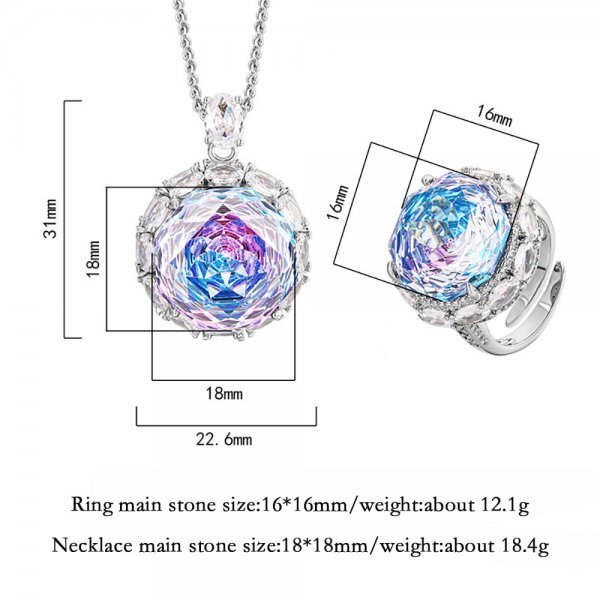 高級レトロ 18mm トルマリン ジュエリーセット、(ペンダントネックレス、リング)、ラボダイヤモンド、女性ギフト