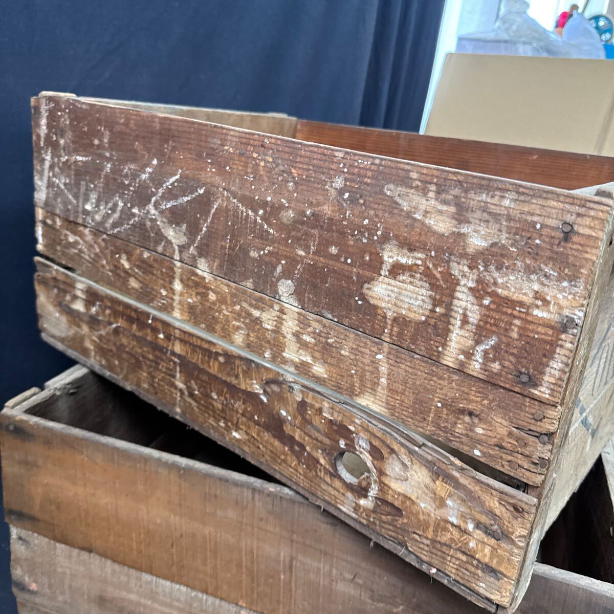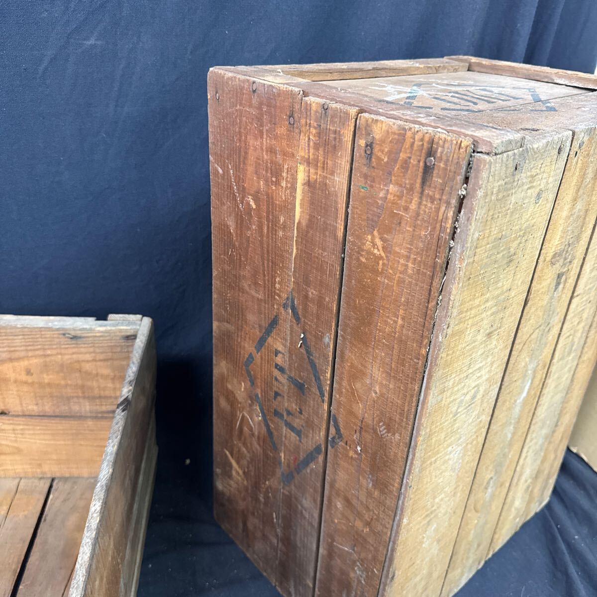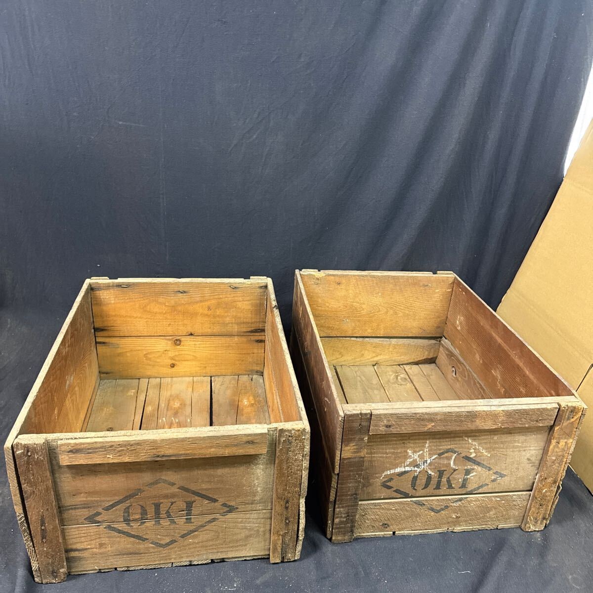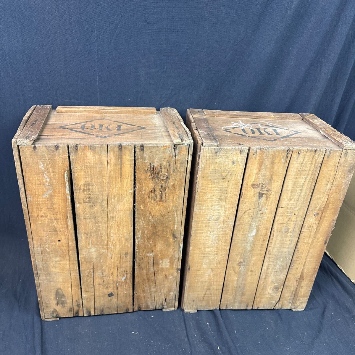 ◆古い木箱 2点セット OKI 木製 収納 ボックス インテリア ディスプレイ ガーデニング 古道具 アンティーク ビンテージ レトロ 255-89