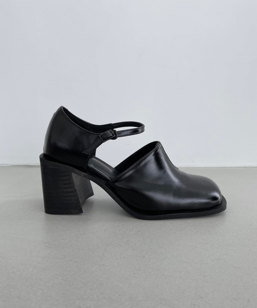 参考商品名:ぽってりスクエアストラップヒールパンプス