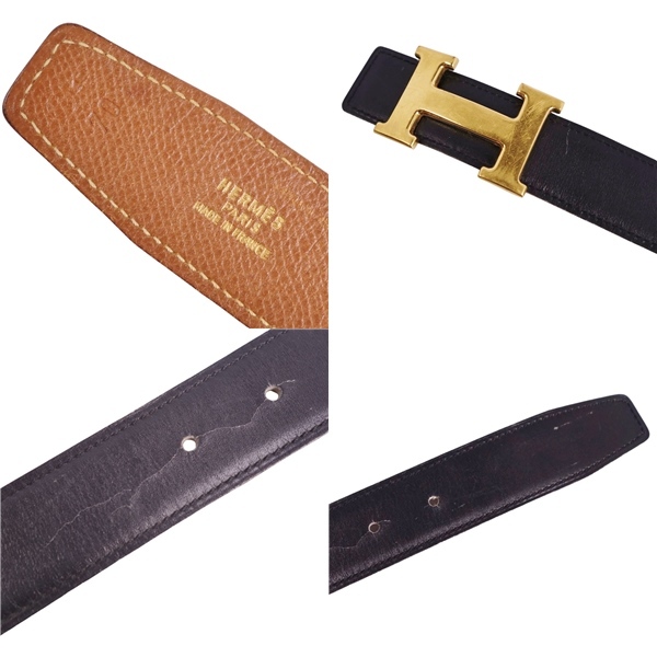 Vintage エルメス HERMES 94年 レザーベルト Hロゴ コンスタンス リバーシブル レディース フランス製 70 ブラック |