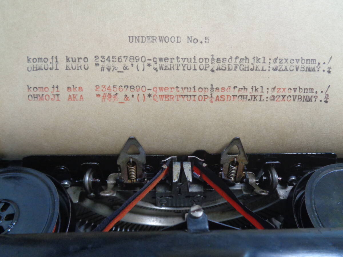 インクリボンは新品を純正の金属シュプールに取り付けています。一部不鮮明な文字がありますが、識別はできます。赤印字の際、黒が混じる文字があります。大事なタイピングの時には黒でのタイプをお勧めします。印字状態は画像をご確認ください。