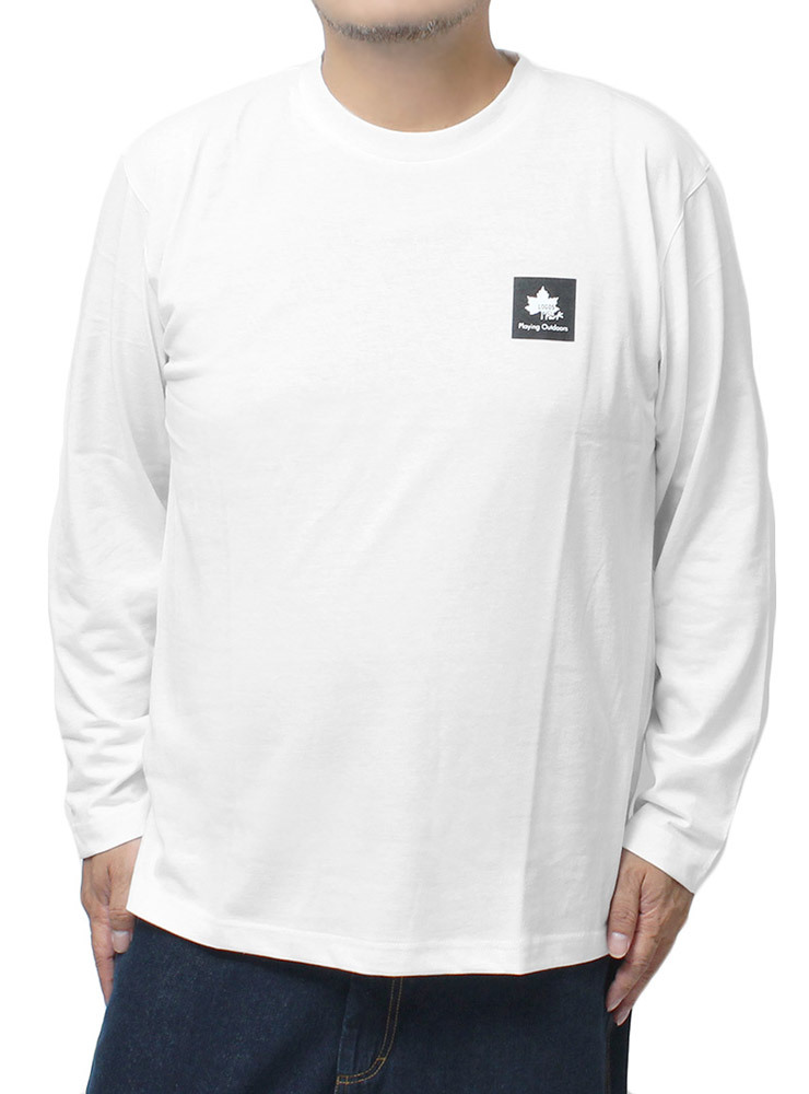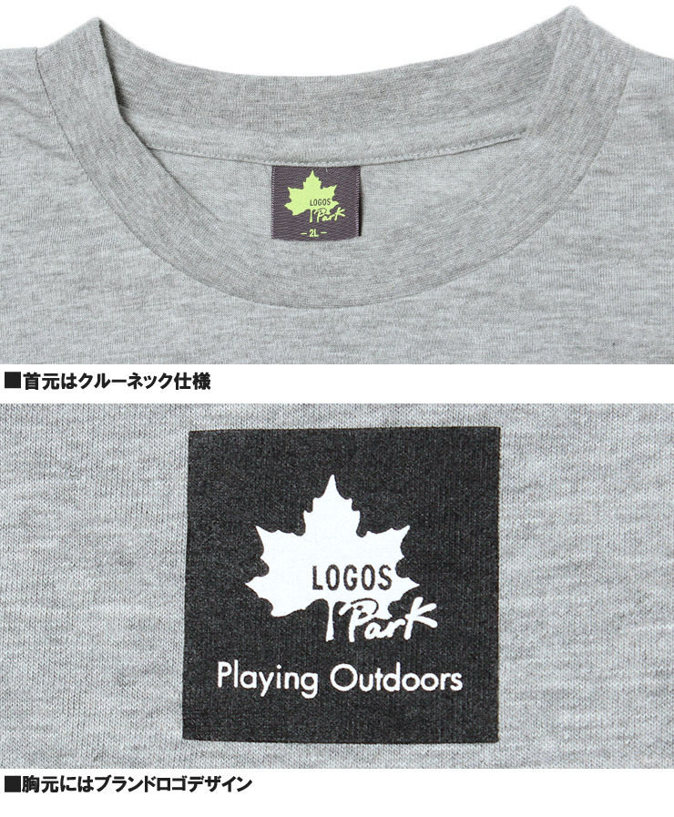商品名 | 【新品】 2L ホワイト LOGOS PARK(ロゴス パーク) 長袖 Tシャツ メンズ 大きいサイズ ボックス ロゴ プリント クルーネック カットソー |