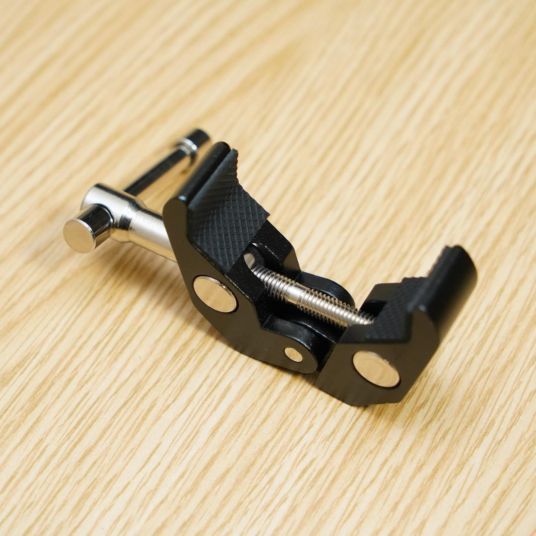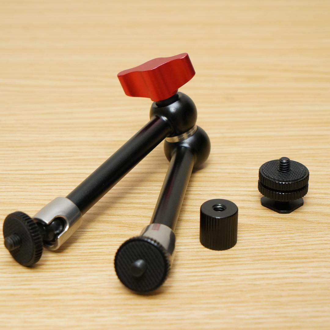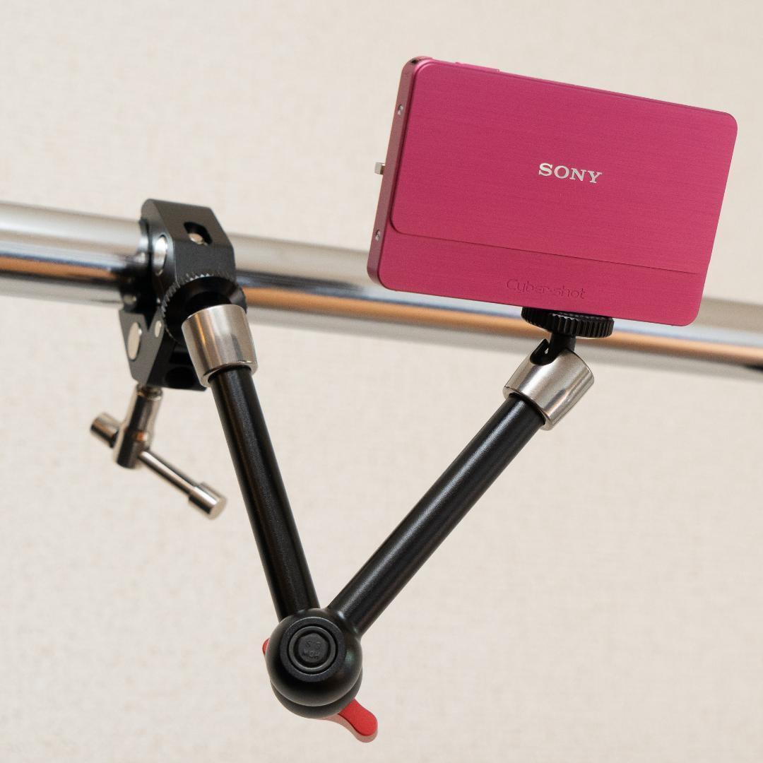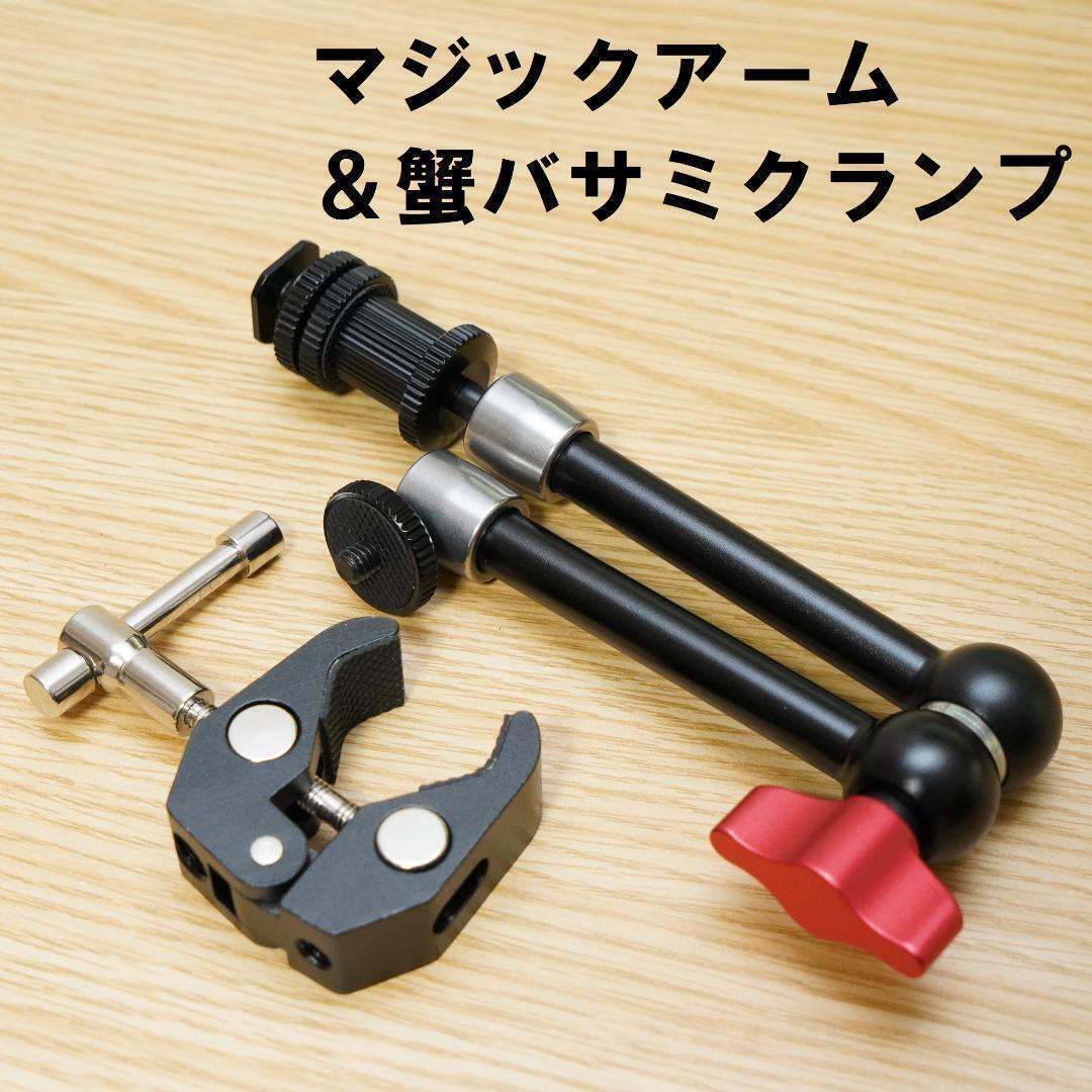 カメラ等の固定に使用できるアームとポール等に挟んで固定できるクランプのセットです。