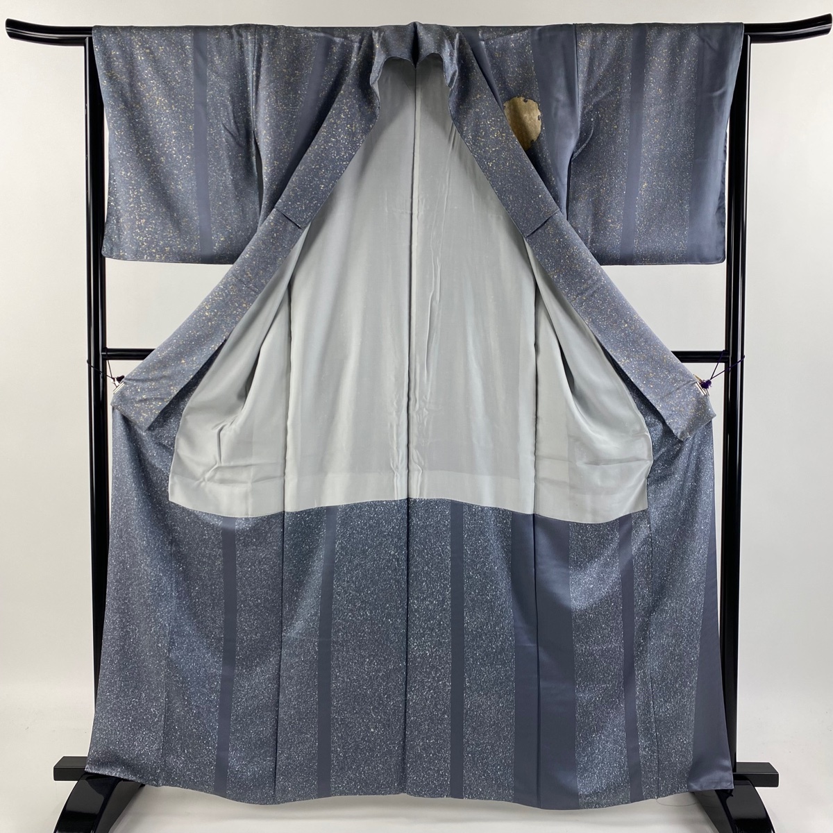 付下げ 秀品 落款 岩井友見 岩井半四郎 雪輪 扇 刺繍 金銀彩 青灰色 袷 身丈162 裄丈65 M 正絹 【中古】 |
