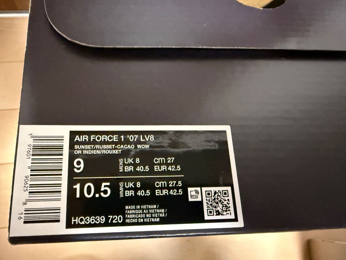 NIKE AIR FORCE1LOWサンセット 27.0cmです。1度だけ履きました。状態良好です。ノークレームノーリターンでお願いします。