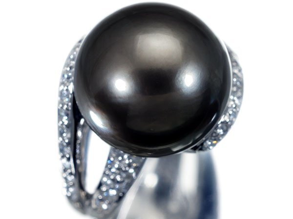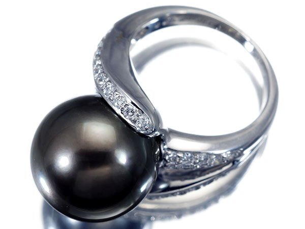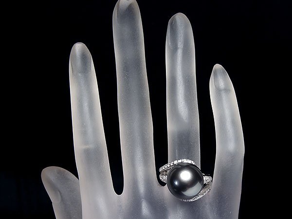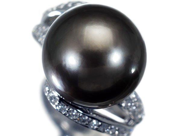 極上の艶と照り放つ、希少な超大珠南洋ブラックパール14.2mm珠&天然ダイヤモンド総計0.53ctを素敵に宝飾した、高級Pt900リングを激安価格で特別大放出致します!