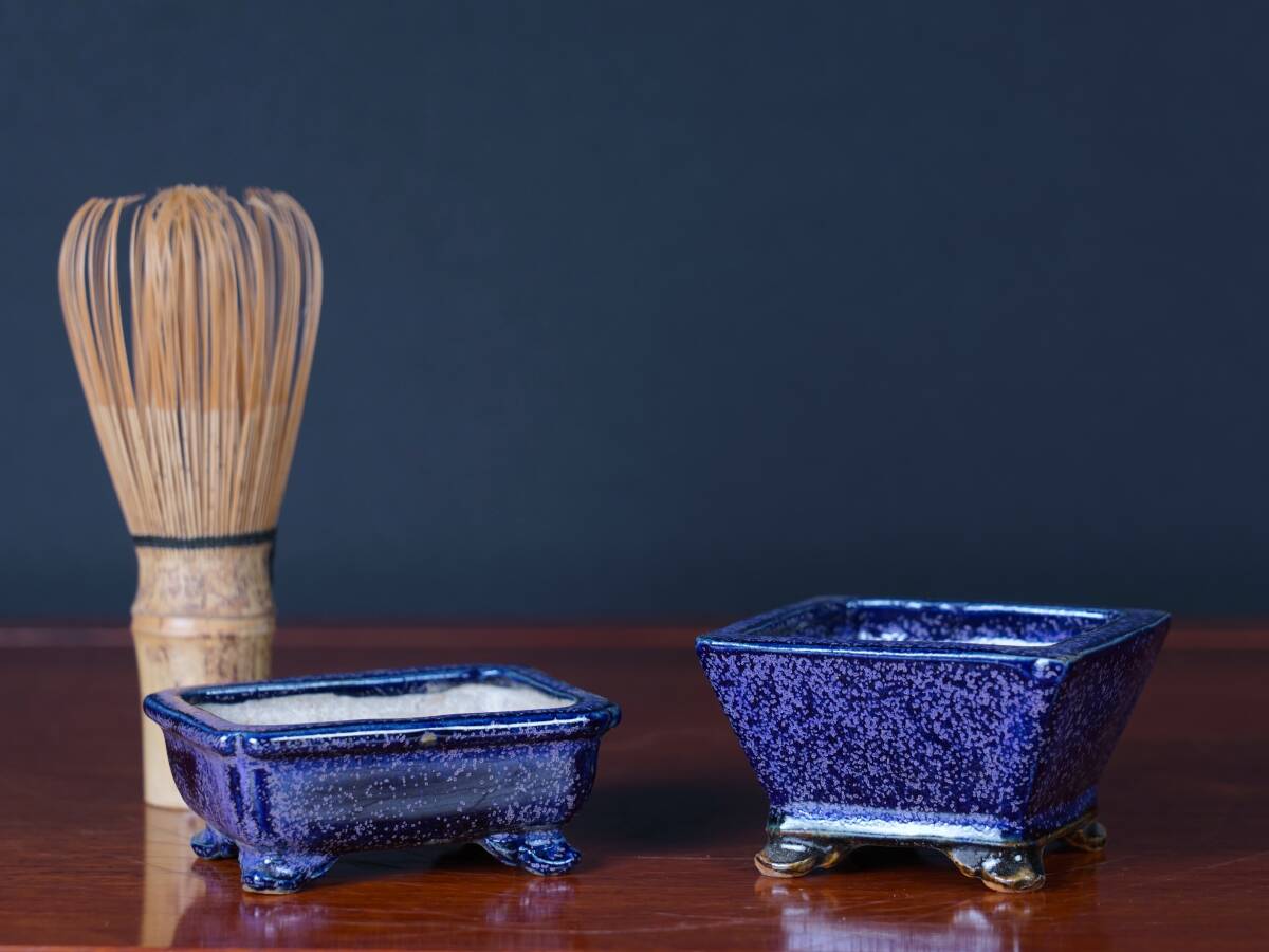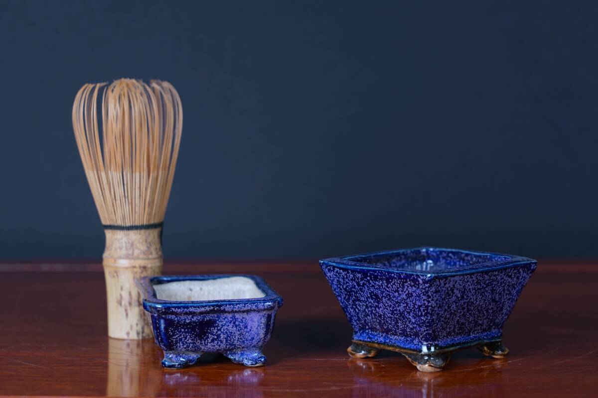 平安虹泉 ミニ鉢 写真右の1点 コバルト釉窯変。