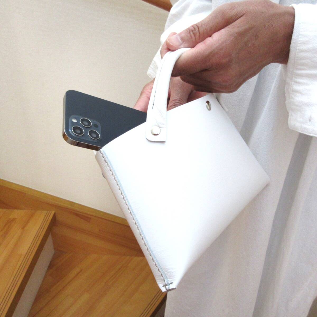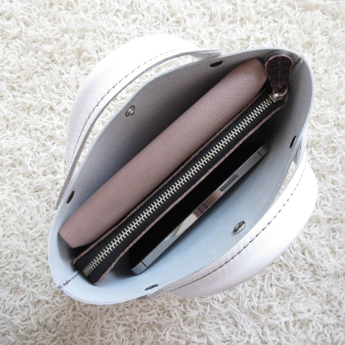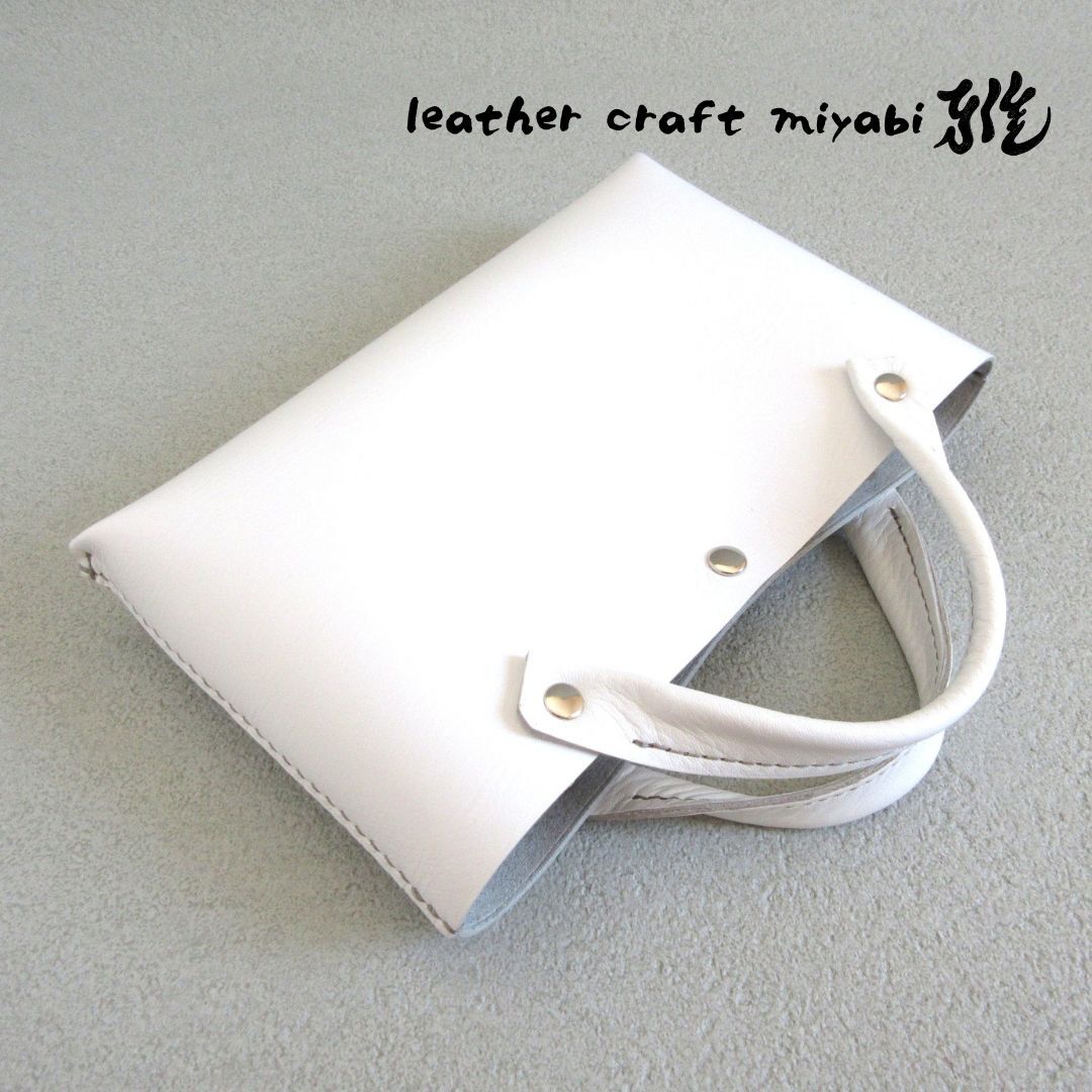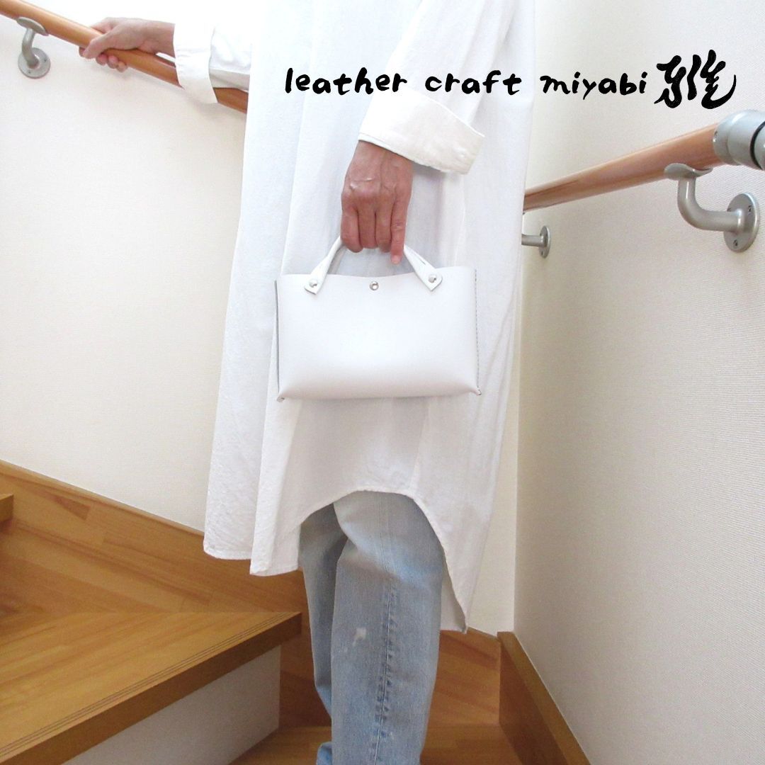 【L.C 雅】☆手縫い☆そのまま持っても映える♪《牛革》バッグインバッグ・ホワイト・081