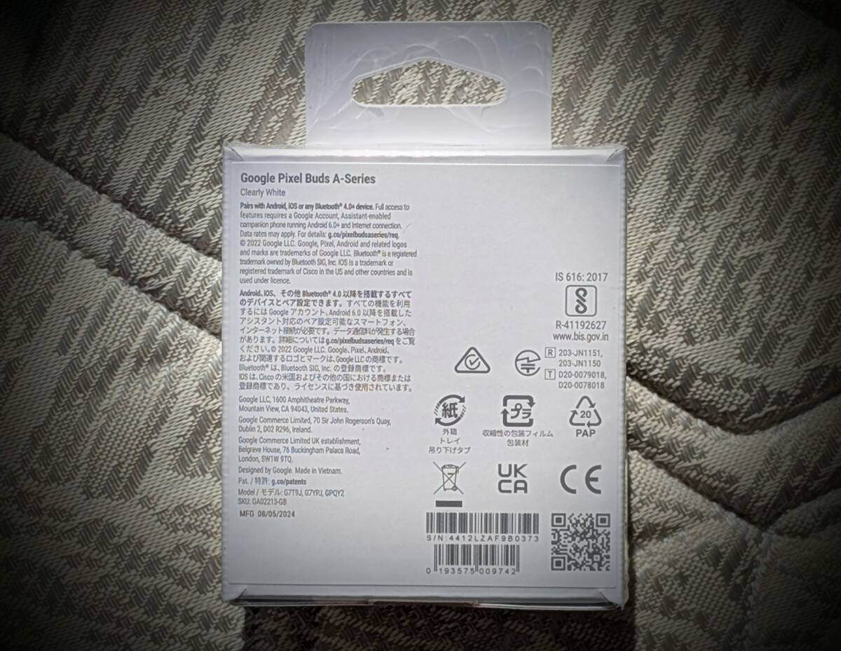 4月に購入した未使用品です。シュリンク付きです。 Google Pixel Buds A-Seriesです。