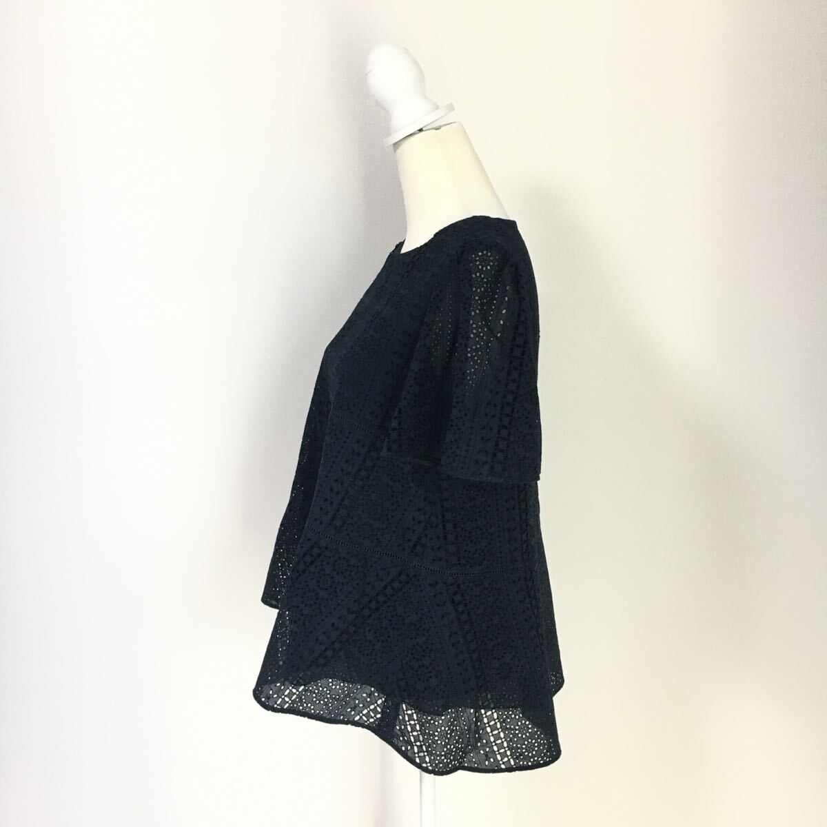 アイレット刺繍が清涼感漂う爽やかブラウスです。ゆったりとしたフレアラインのシルエットがフェミニン。パンツにもスカートにも好相性でコーディネートの幅も広がります。