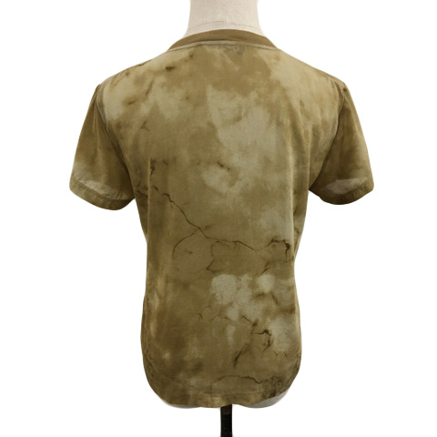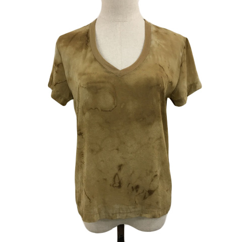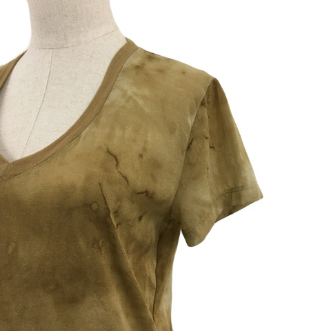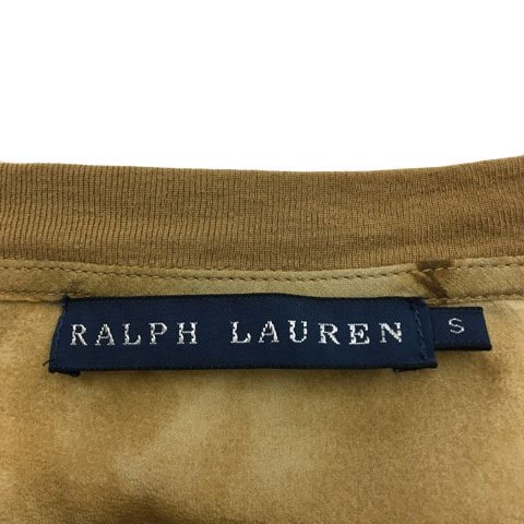 ラルフローレン RALPH LAUREN カットソー プルオーバー Vネック シアー 総柄 シルク 半袖 S 茶 ブラウン レディース
