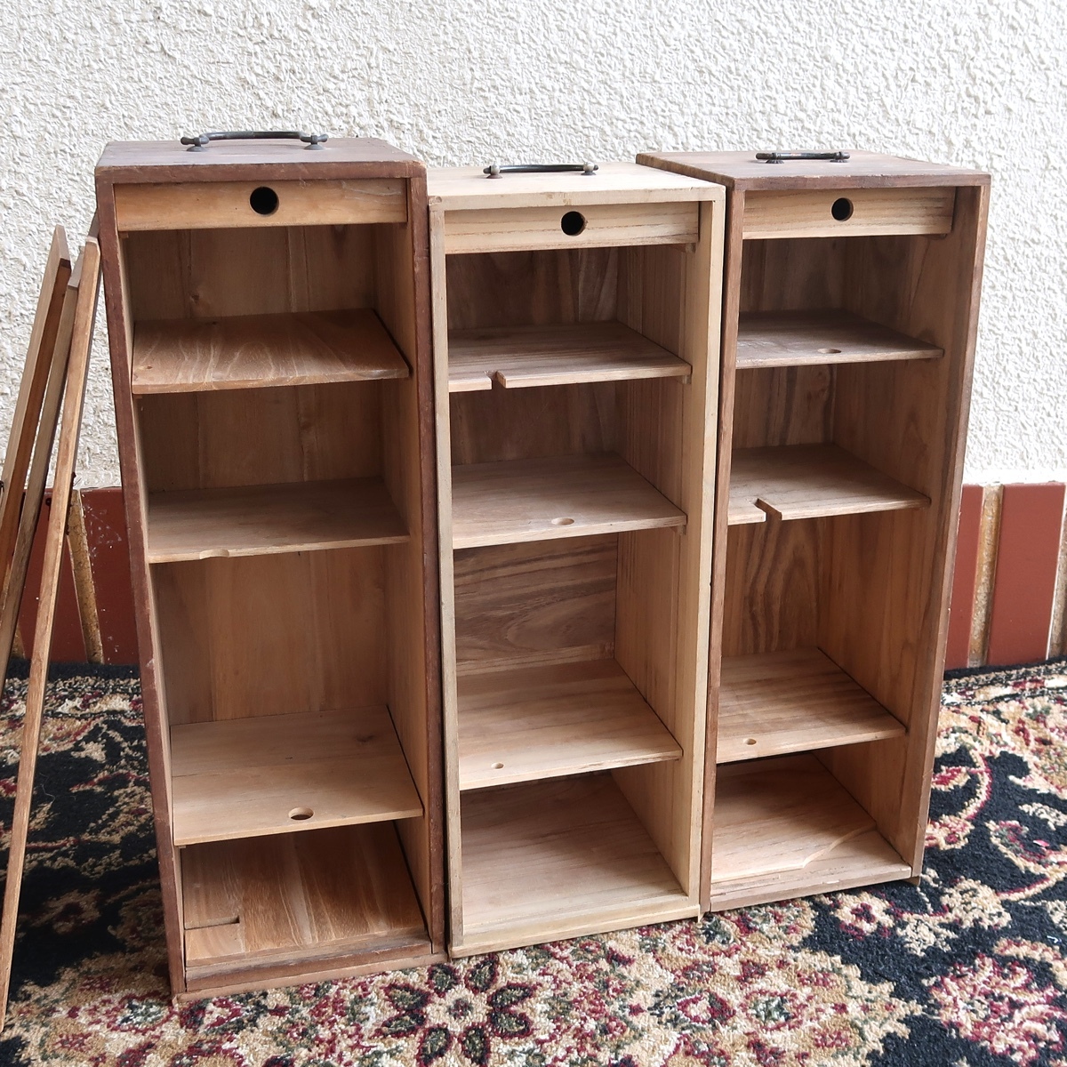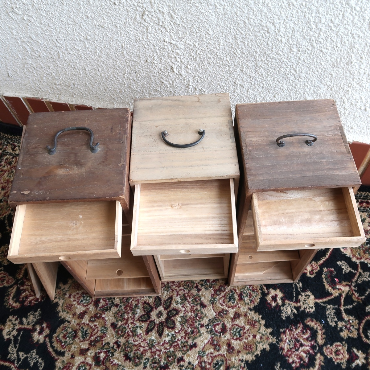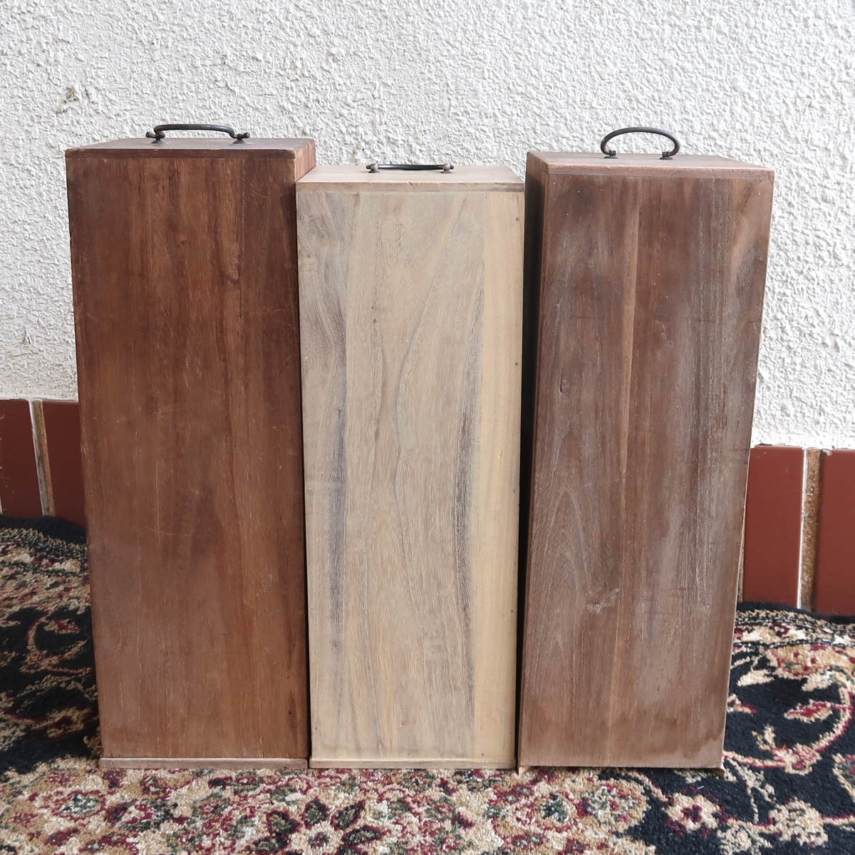 いずれもだいたい18センチ×18センチ、高さが一番高いものがだいたい53.5センチ、低いものがだいたい51センチです。