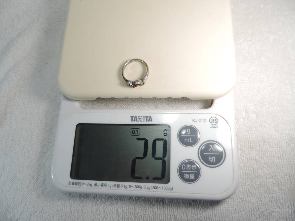 シルバー925刻印有りレディース指輪マルチカラーストーンリング 約11号・約2.9g