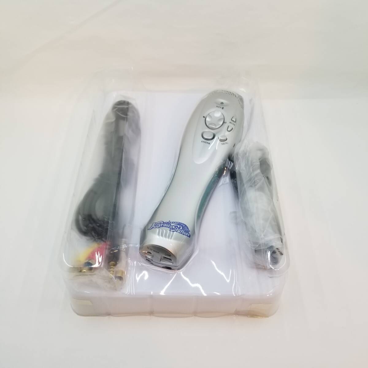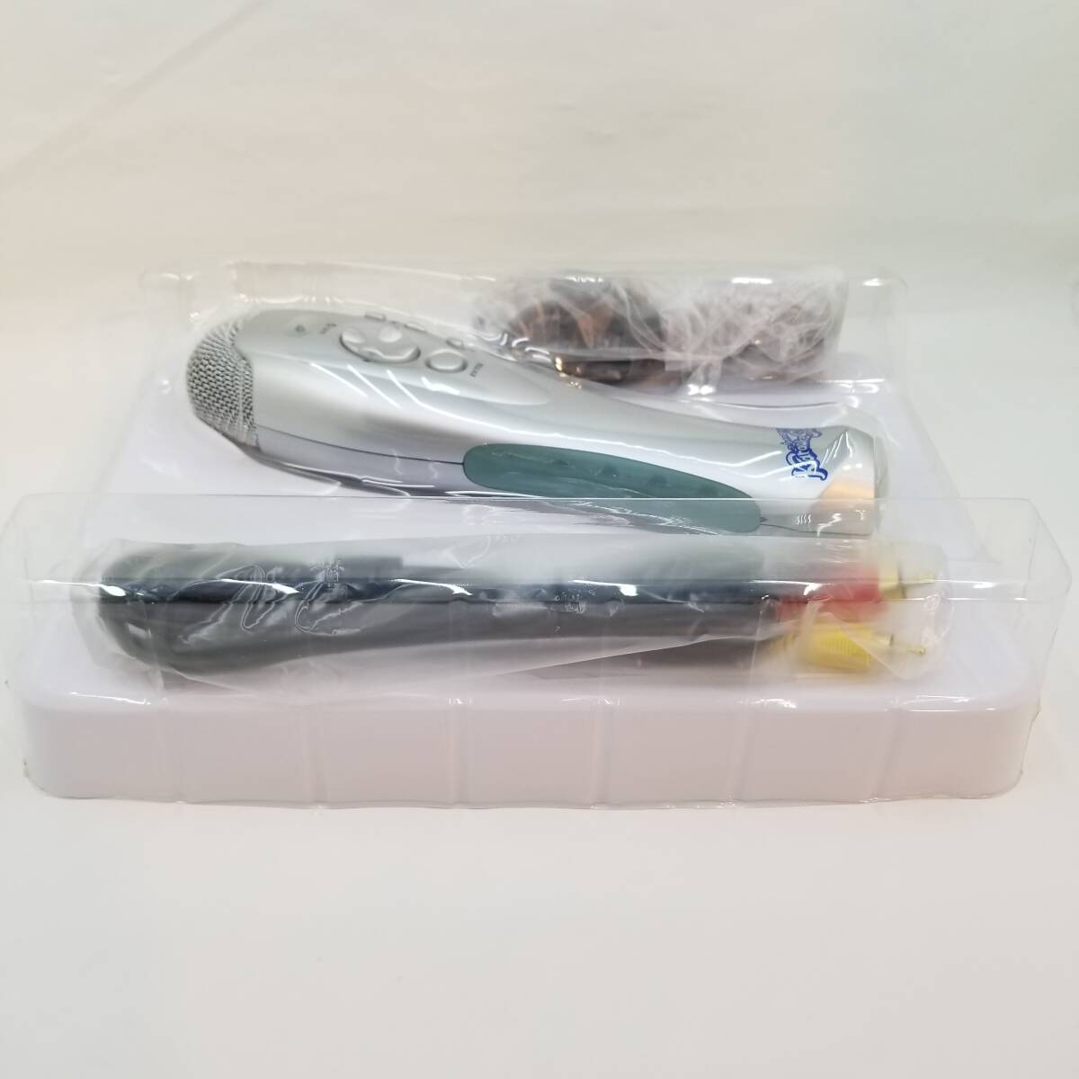 2002年10月19日発売 専用ホームページから曲のデータをダウンロードすれば、 テレビにつなげるだけでカラオケが楽しめる次世代テレビカラオケ 「カラオケステーション」が登場。 ホームページでは10000曲(2003年3月時点)におよぶ曲データがあり、 最新の楽曲もすぐにアップされるので、好きなときに好きな曲だけを選曲できます。 本体の機能も、エコー機能やボイスチェンジ機能、 スコア機能など盛りだくさん。 長期保管品になります。 出品撮影の為に開封しました。 未使用品なので動作未確認です。 古い物なので、今の環境で使用できるか不明です。 外箱は傷や汚れ多数あります。 | |