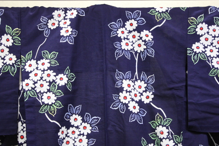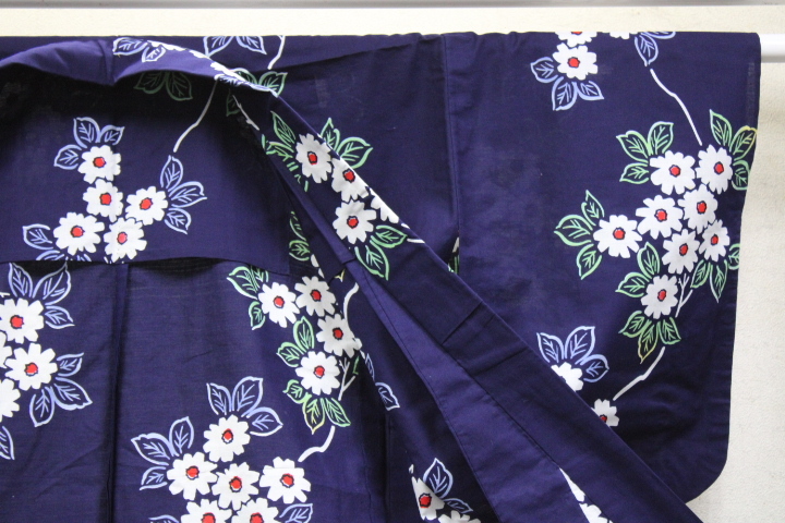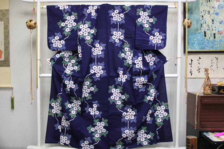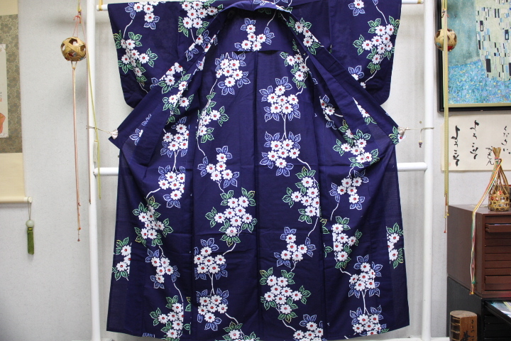 夏のきもの コーマ糸綿100%本染ゆかた バチ衿手縫い仕立て 未使用に近い