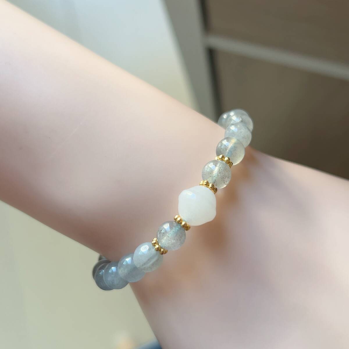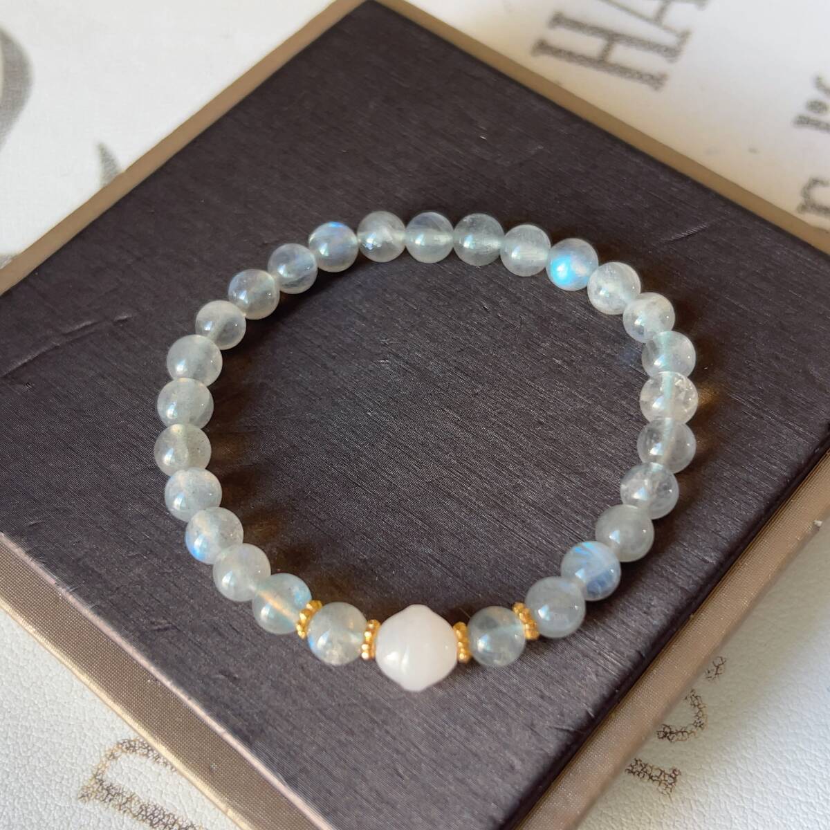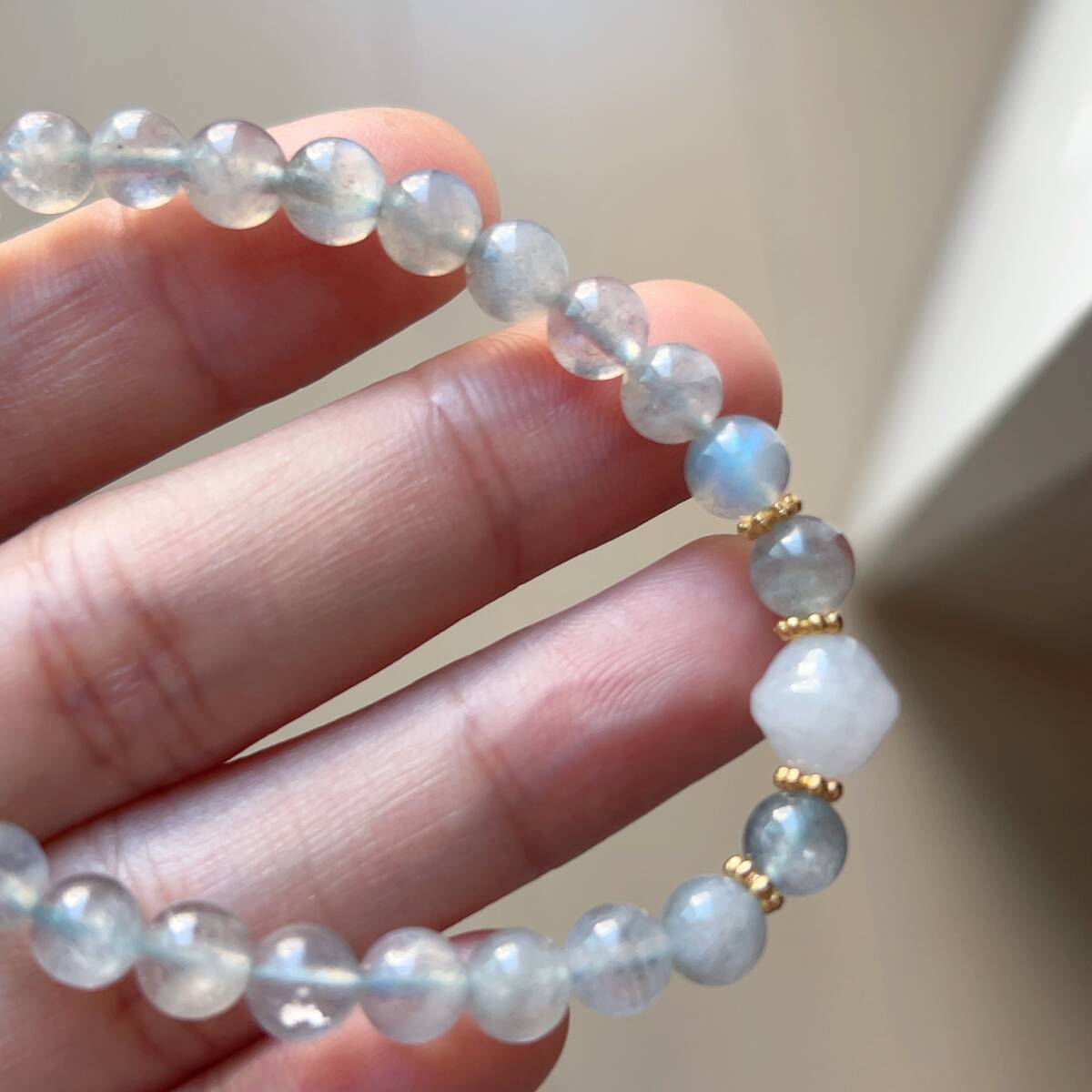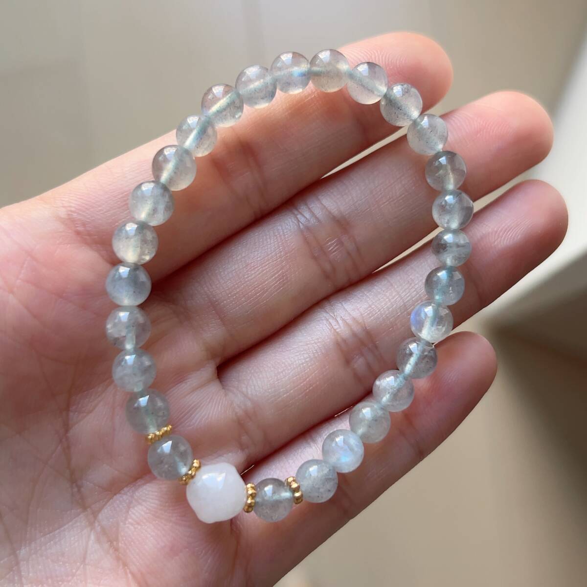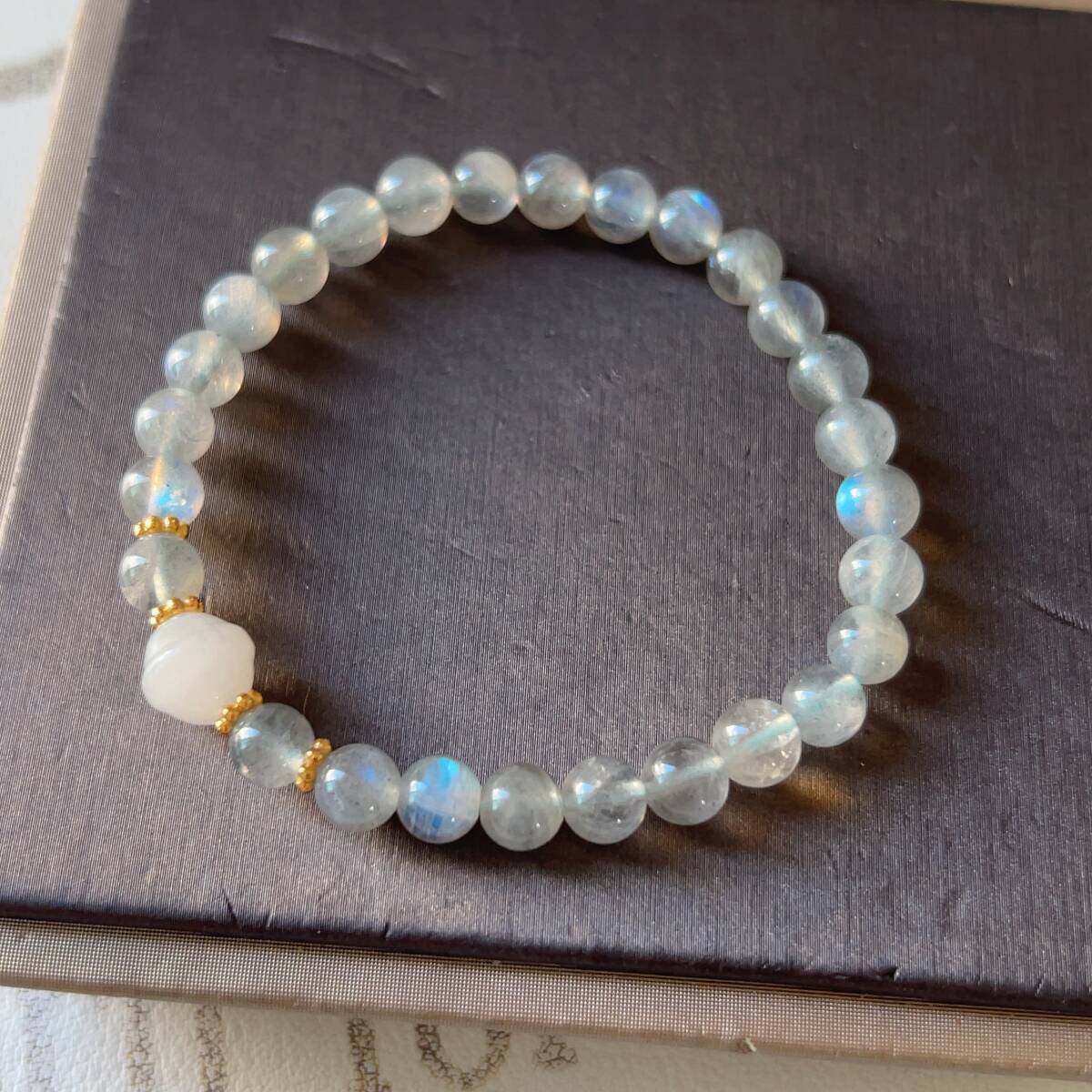 ◇シラー強め◇グレームーンストーン+金糸玉1粒◇ブレスレット◇パワーストーン◇天然石◇巾着袋付き◇プレゼントにも 038B7202