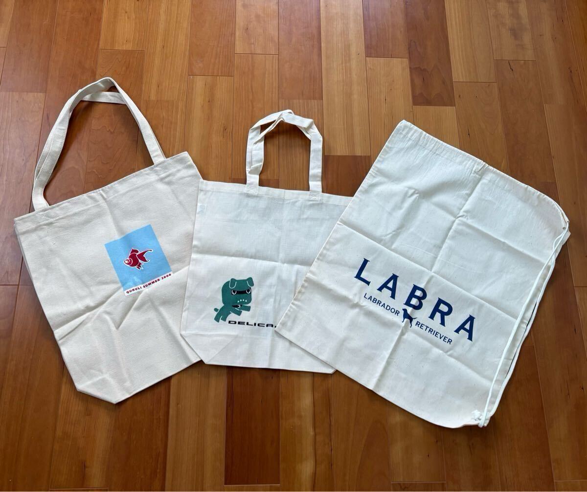ノベルティのトートバッグ2点と巾着1点の計3点。