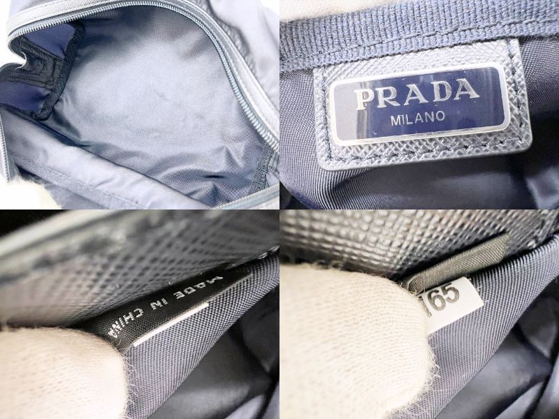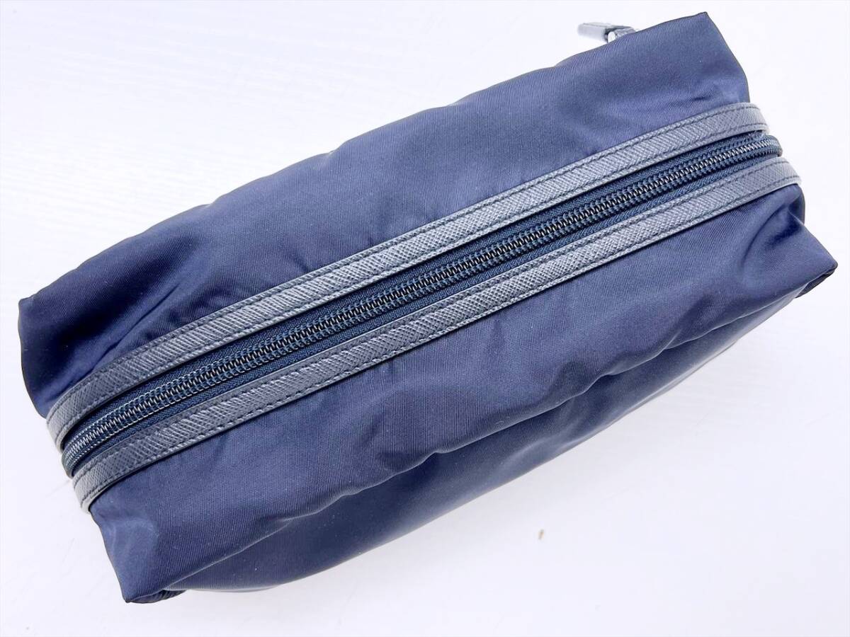 美品 PRADA プラダ トライアングルロゴ ナイロン サフィアーノ ポーチ ネイビー 2NA028