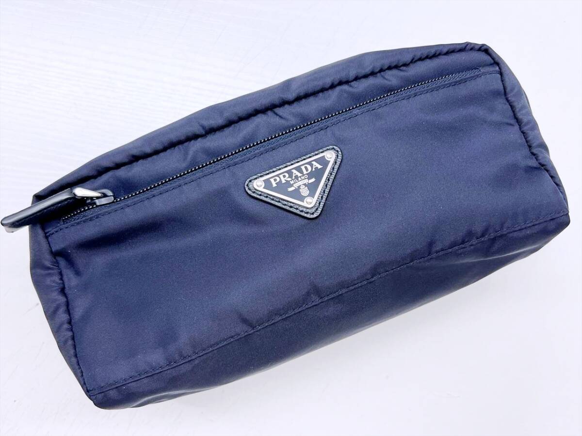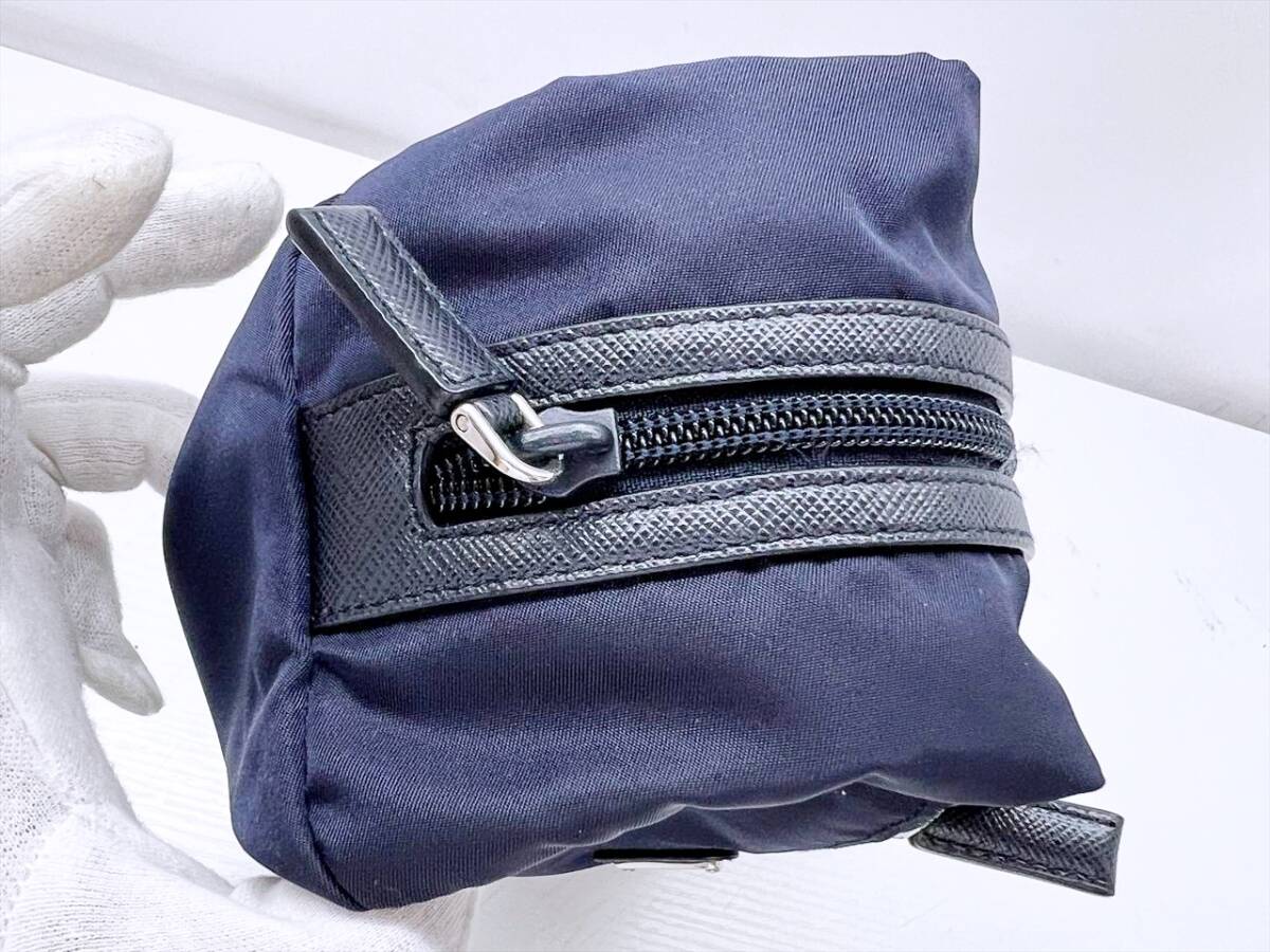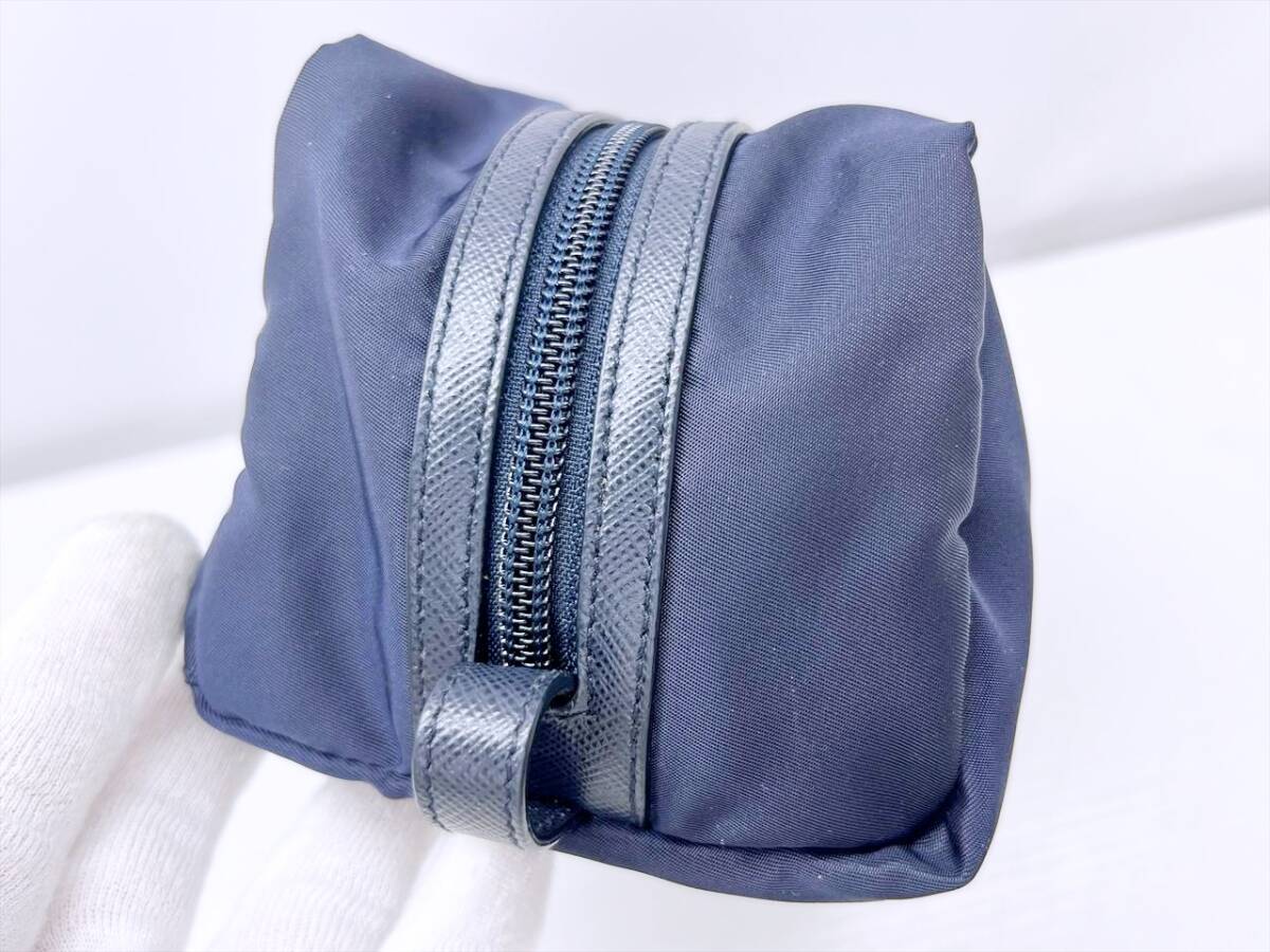 美品 PRADA プラダ トライアングルロゴ ナイロン サフィアーノ ポーチ ネイビー 2NA028