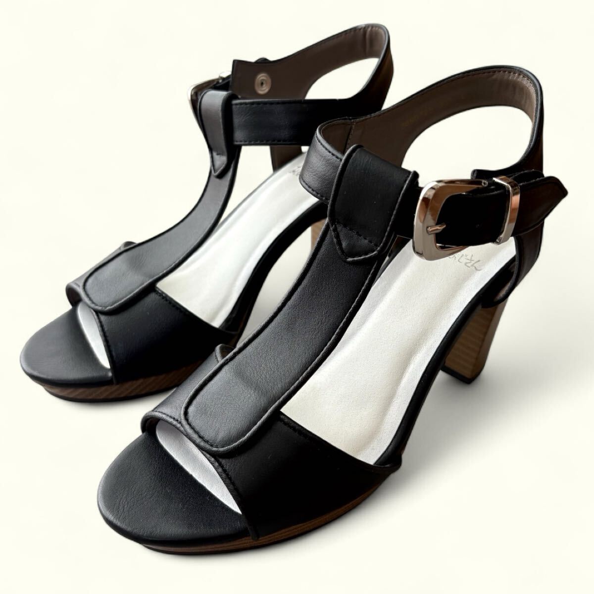 Tストラップサンダル チャンキーヒール パンプス