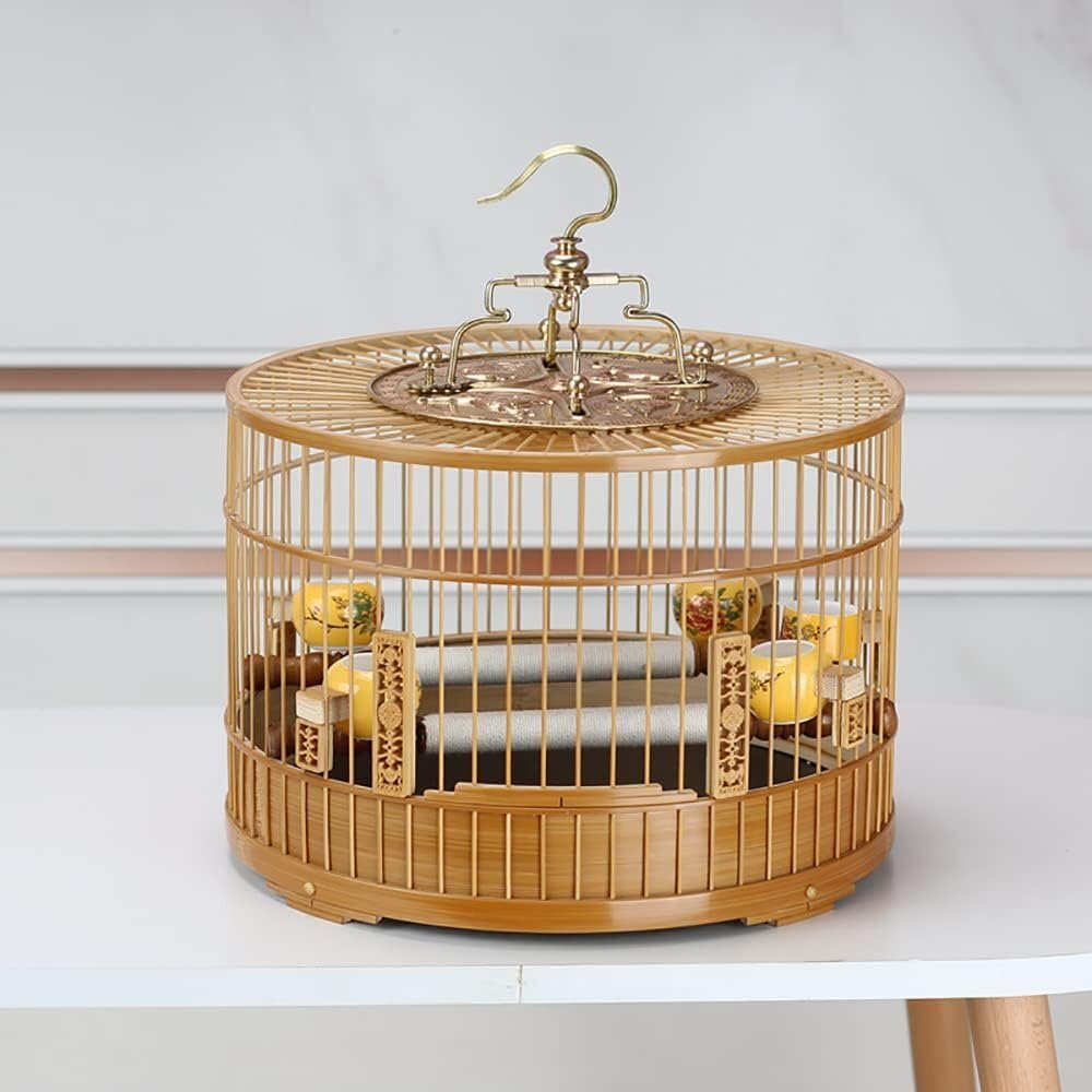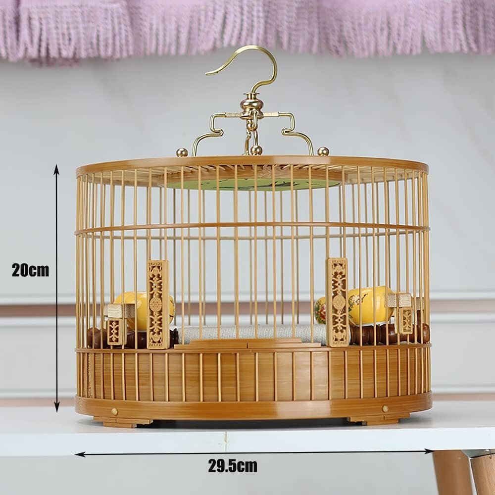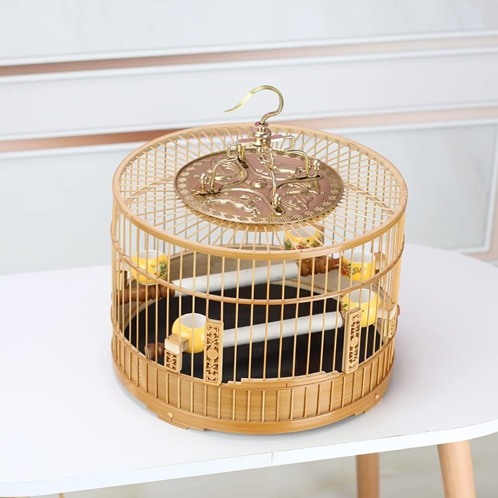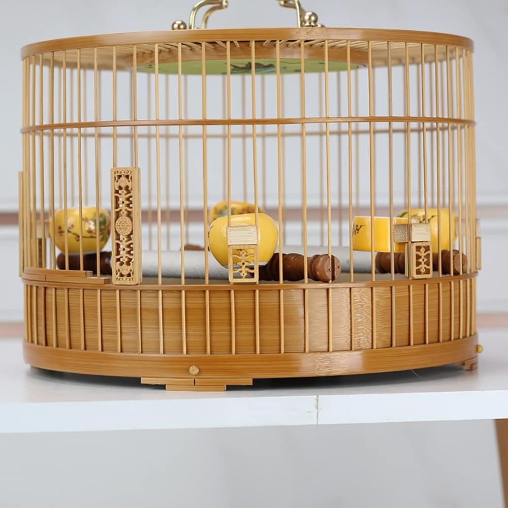 手作りの竹製鳥かご 丸型鳥かご 小型のエキゾチックな鳥やカナリアに適したポータブル鳥かご