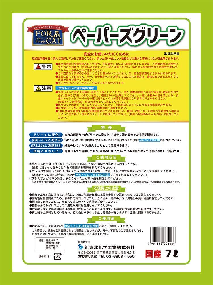 新東北化学工業 猫砂 ペーパーズグリーン 7L