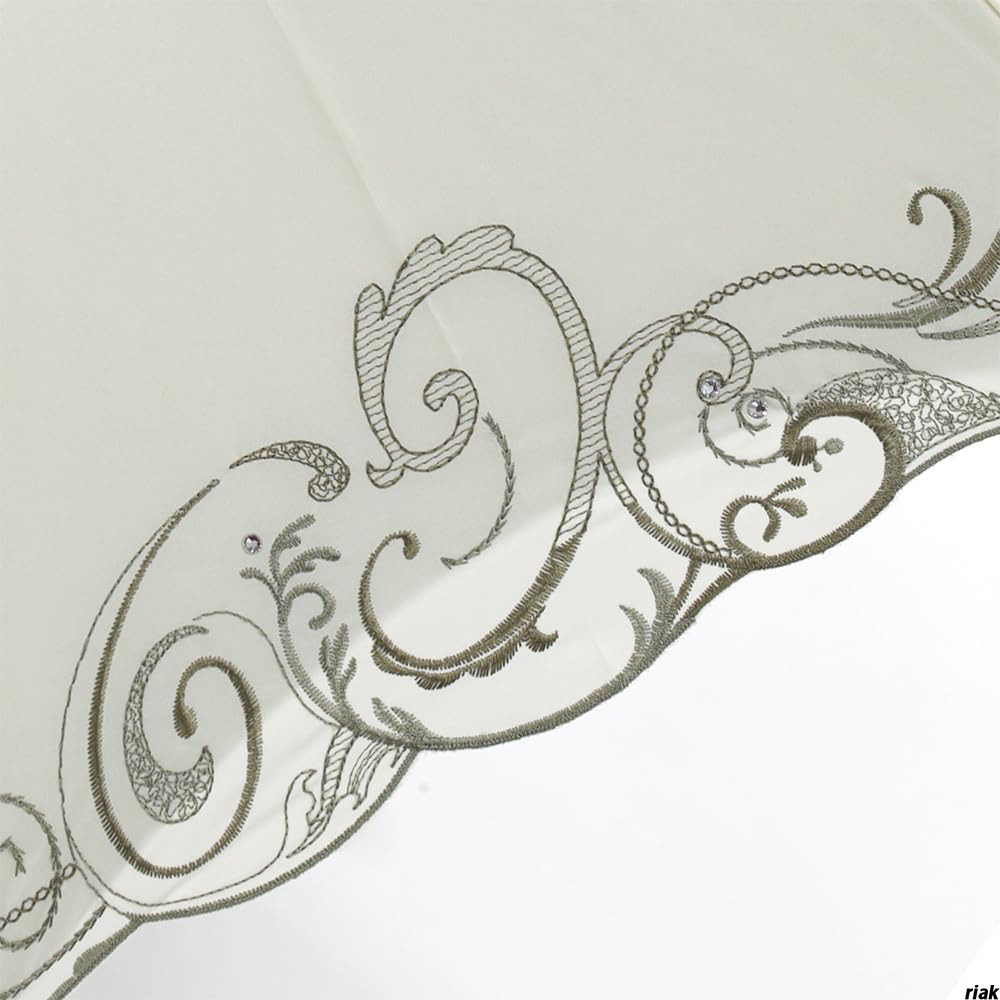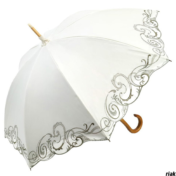 【遮熱・逃熱効果があるレディース日傘】 晴雨兼用長傘 完全遮光 UVカット 遮熱効果 ペイズリー刺繍 ホワイト×オリーブ50