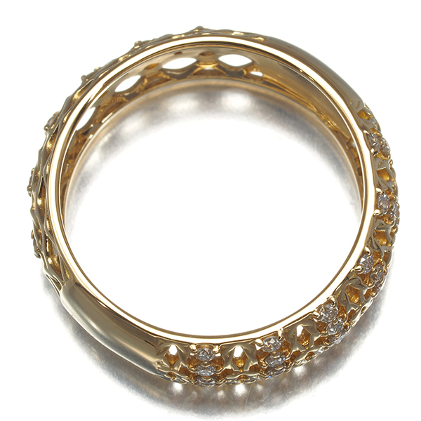 2WAYデザインでお手元を演出する美しい透かしと共に瑞々しく繊細なダイヤの輝きを留めたリングです。※デザインの切れ目は2個所ございます。 |