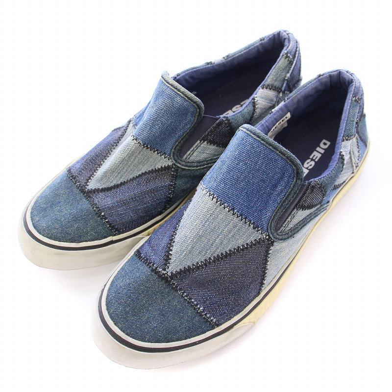 ディーゼル DIESEL VANSIS スリッポン ローカットシューズ デニム パッチワーク 切替 US8.5 25.5cm 青 ブルー 紺 ネイビー /BB メンズ