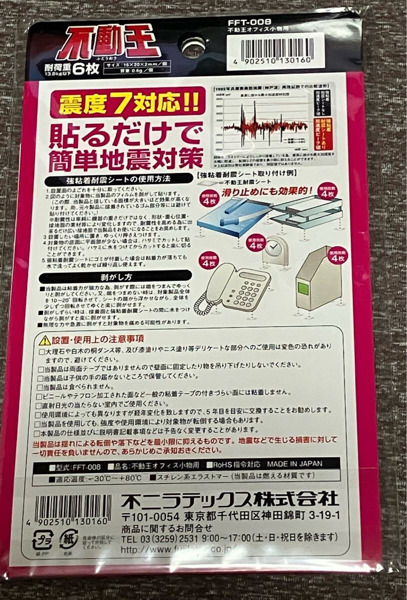家具転倒防止器具 不動王 オフィス小物用 強粘着耐震シート FFT-008