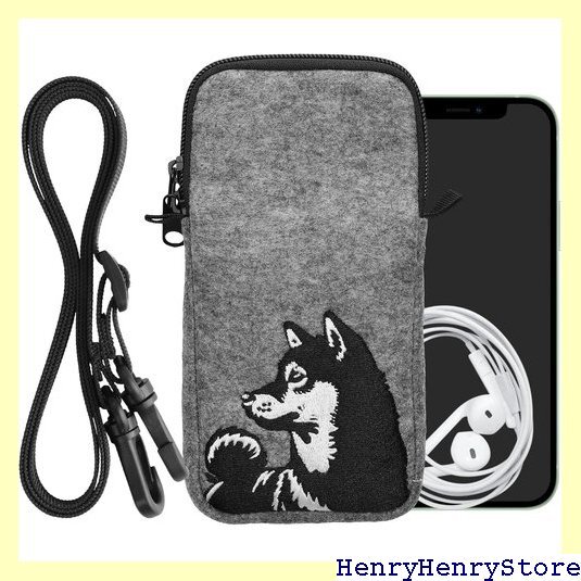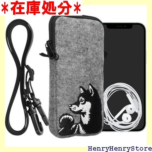 kwmobile スマホショルダー XXL - 7"対応 - フェルト スマートフォン 首掛け 保護ケース 柴犬デザイン 1520