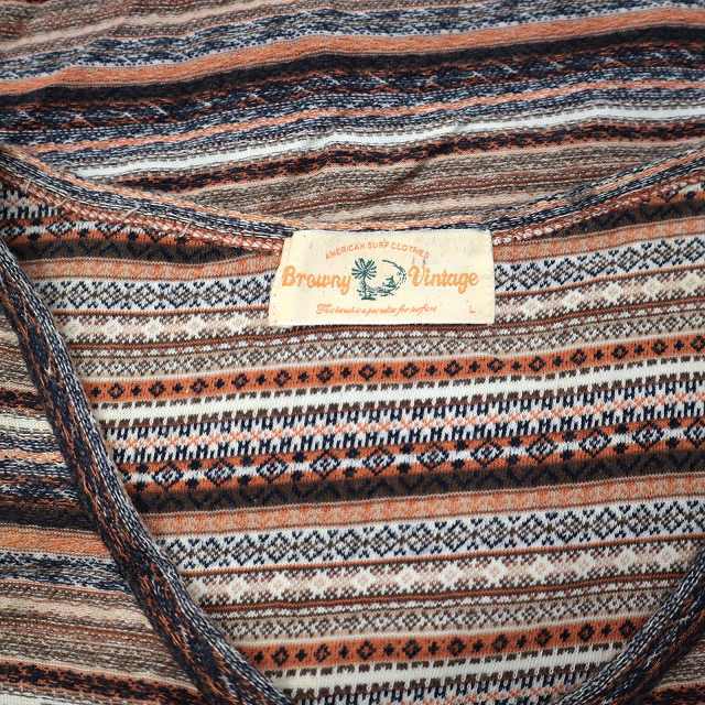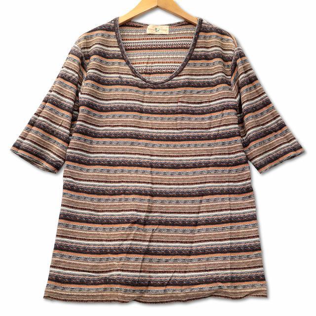 Browny Vintage ブラウニービンテージ コットン 柄ボーダー ニット カットソー L ブラウン レディース