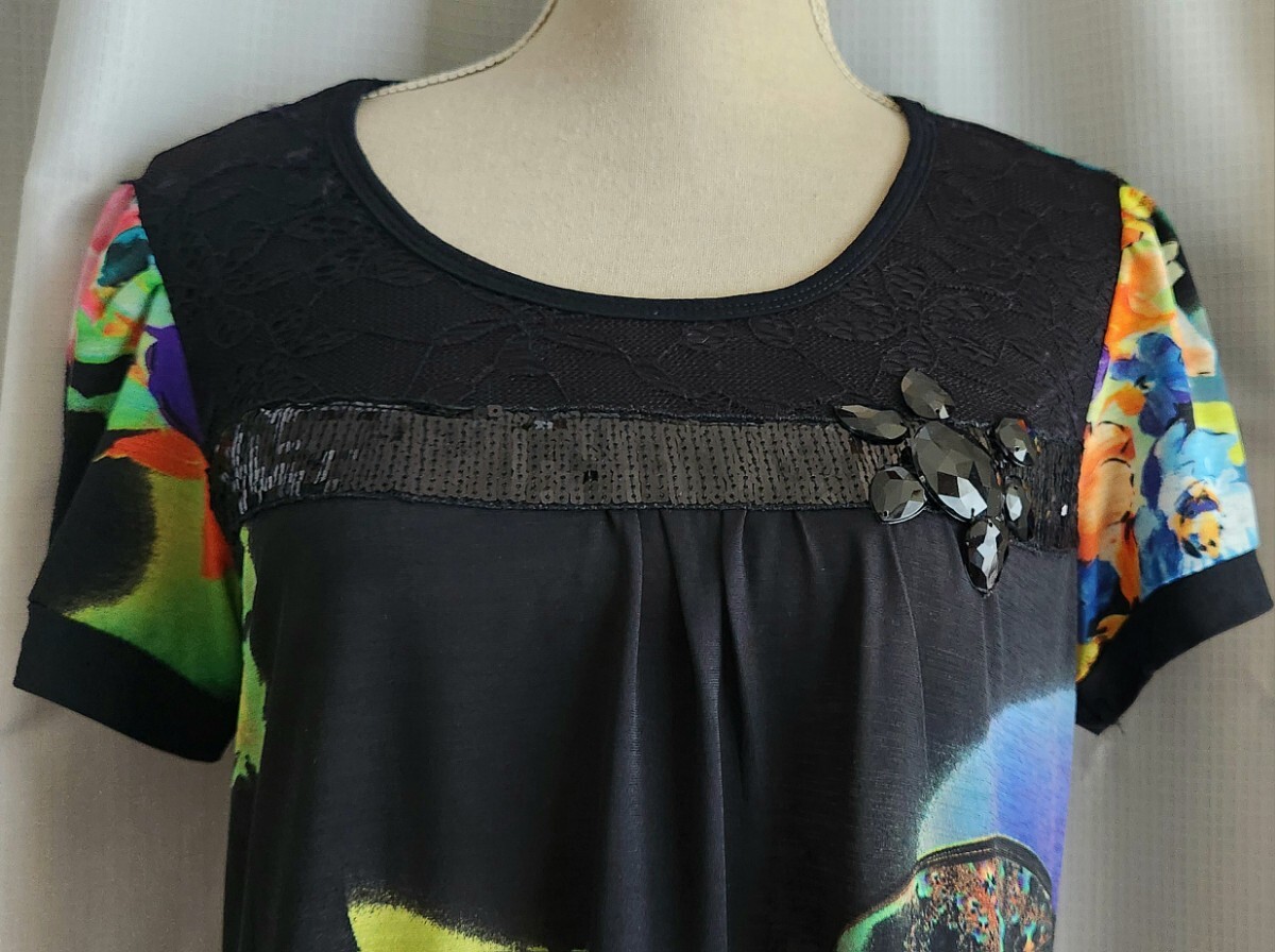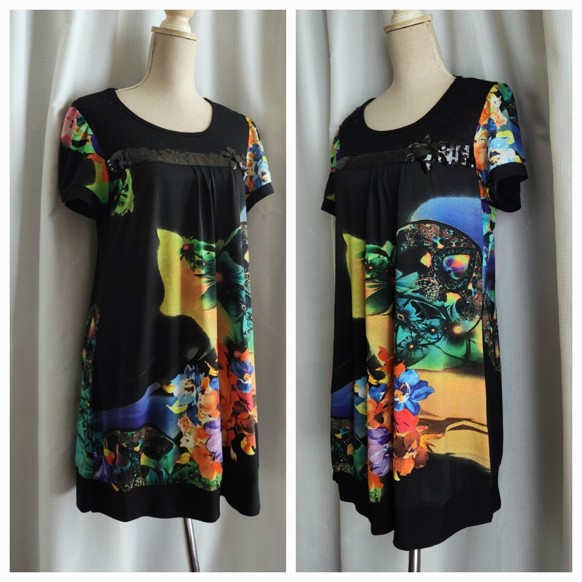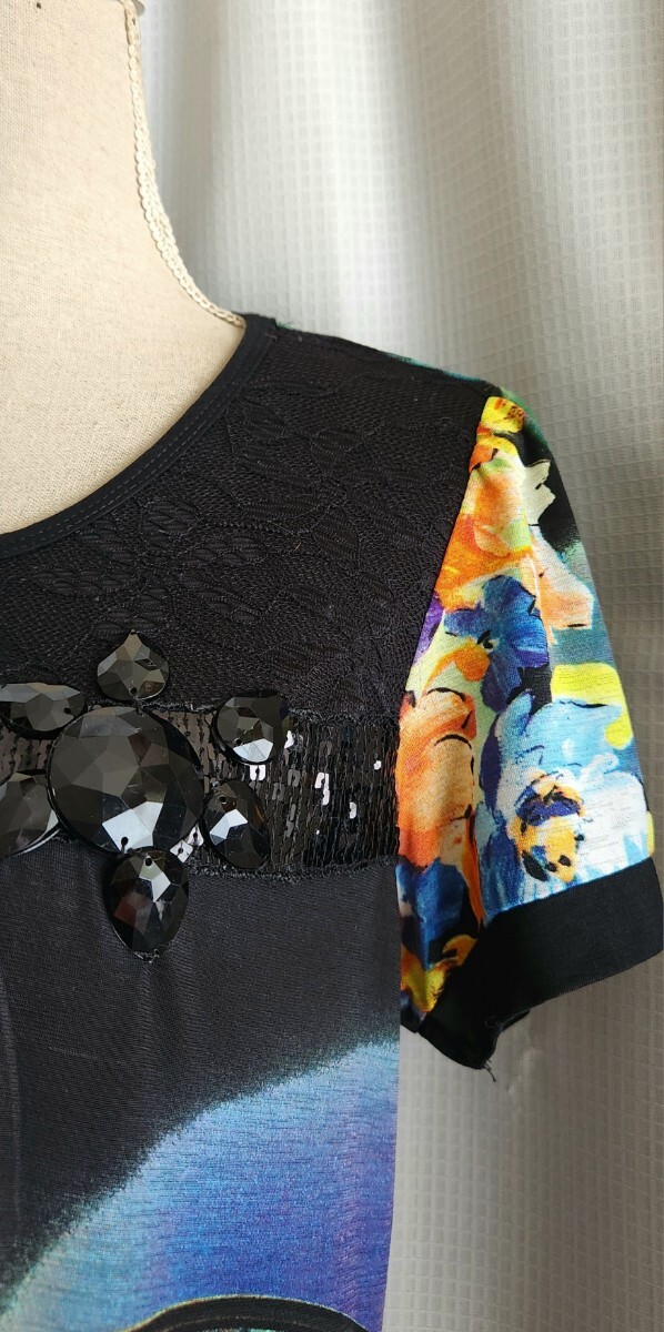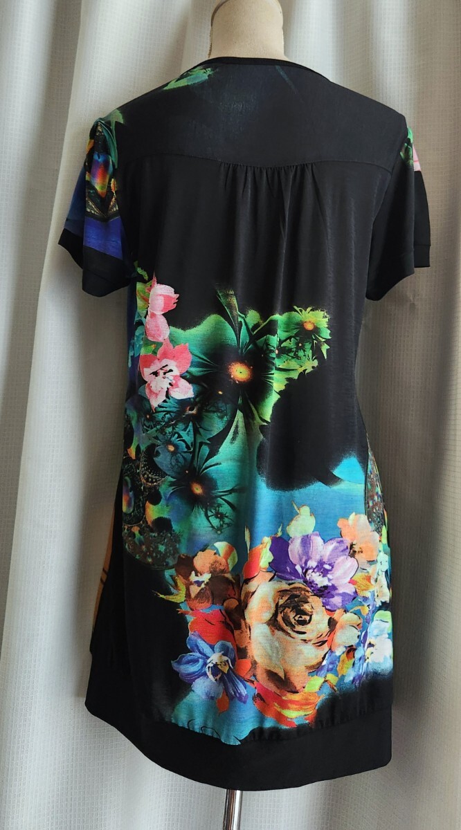 未使用レベル Lascolinas M~L 華やかなジャージーチュニック 半袖 花柄