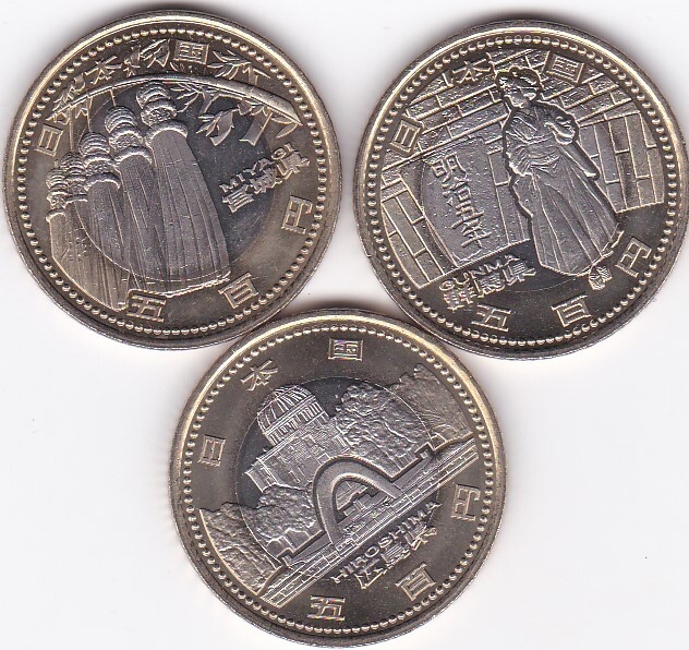 ●☆地方自治法施行60周年記念500円 宮城県 群馬県 広島県 平成25年★