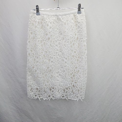 ◇ Θ CLEARIMPRESSION クリアインプレッション 花柄 レース ひざ下丈 タイト スカート サイズ1 ホワイト レディース E