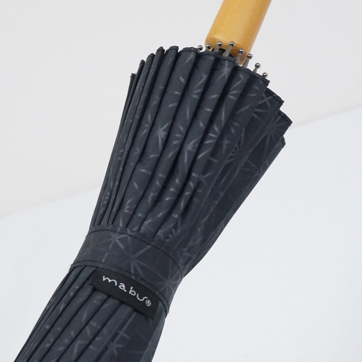 傘 晴雨兼用 mabu マブ 24本骨傘 USED美品 江戸 「墨×菊繋ぎ」 モダン レトロ 24本骨 多間 グラス骨 和装 和柄 着物 60cm A2970