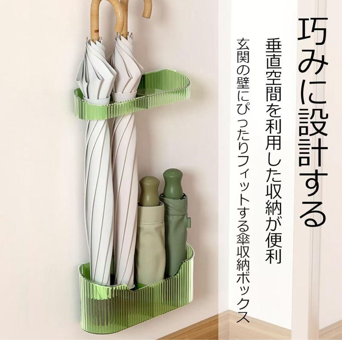 アンブレラスタンド 傘立て スリム (上)約W23×D6.3×H4cm (下)約W23×D7×H10cm スマート smart 省スペース (コンビネーショングリーン)