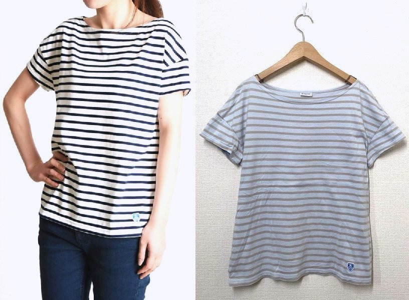 【レディース】ORCIVAL オーシバル 半袖 ドロップショルダー ボーダー Tシャツ F ブルー グレー ボートネック トップス AA7789