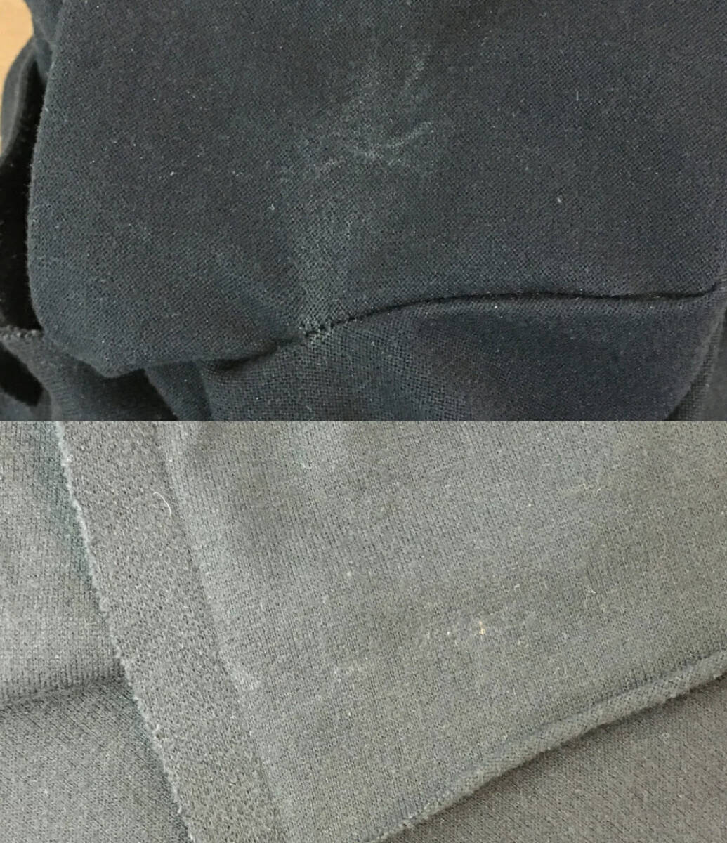 ダメージ詳細 香水類の強い匂い残りあり 襟付近に毛玉あり 右脇裏、右袖、袖裏付近に色落ちあり 裾付近にシミあり |