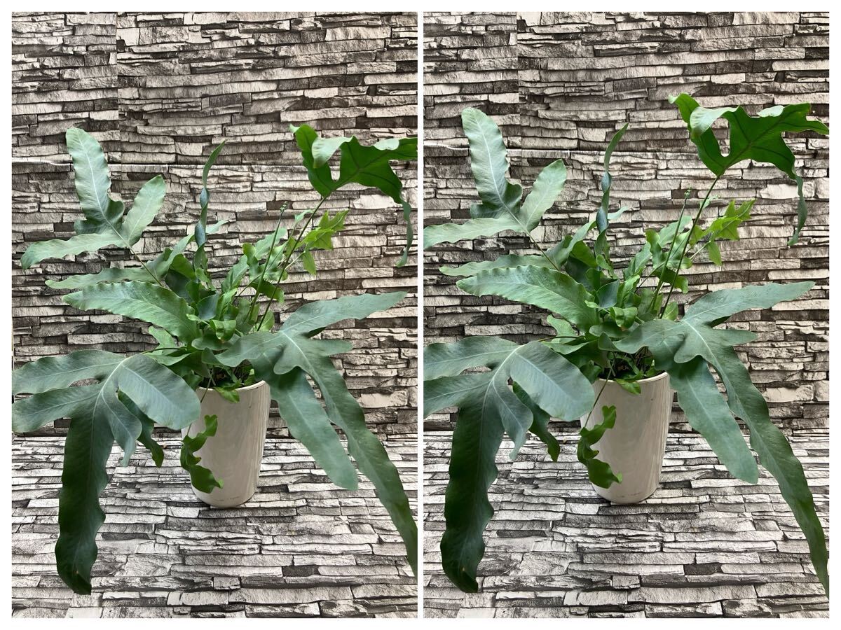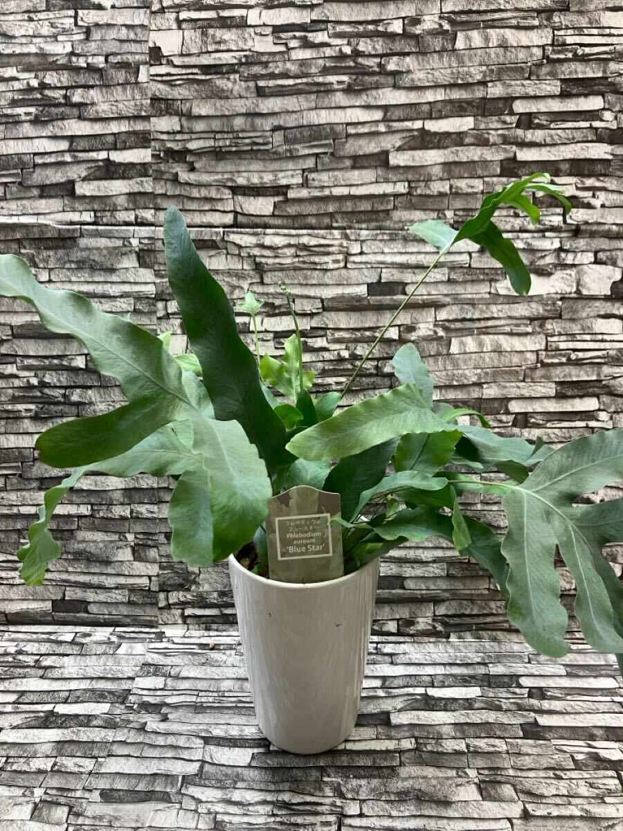 ・『フレボディウム・オーレウム・ブルースター』という品種で、青みがかった葉に海藻のようなうねりのある葉が特徴的な品種になります。