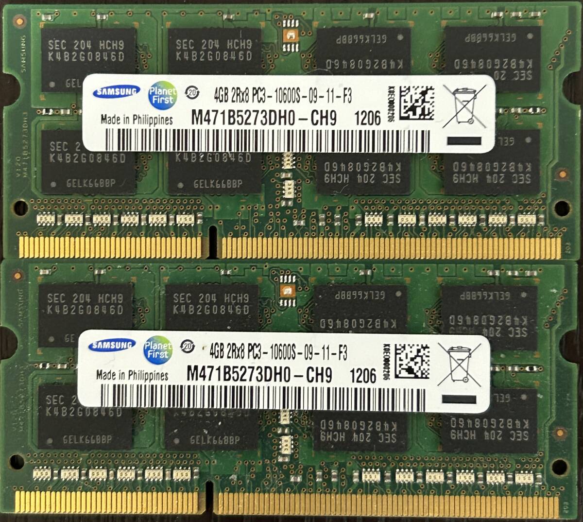 即決 動作確認済み SAMSUNG サムスン SO-DIMM 204pin DDR3 PC3-10600S 4GB×2枚 ノートパソコン用   707