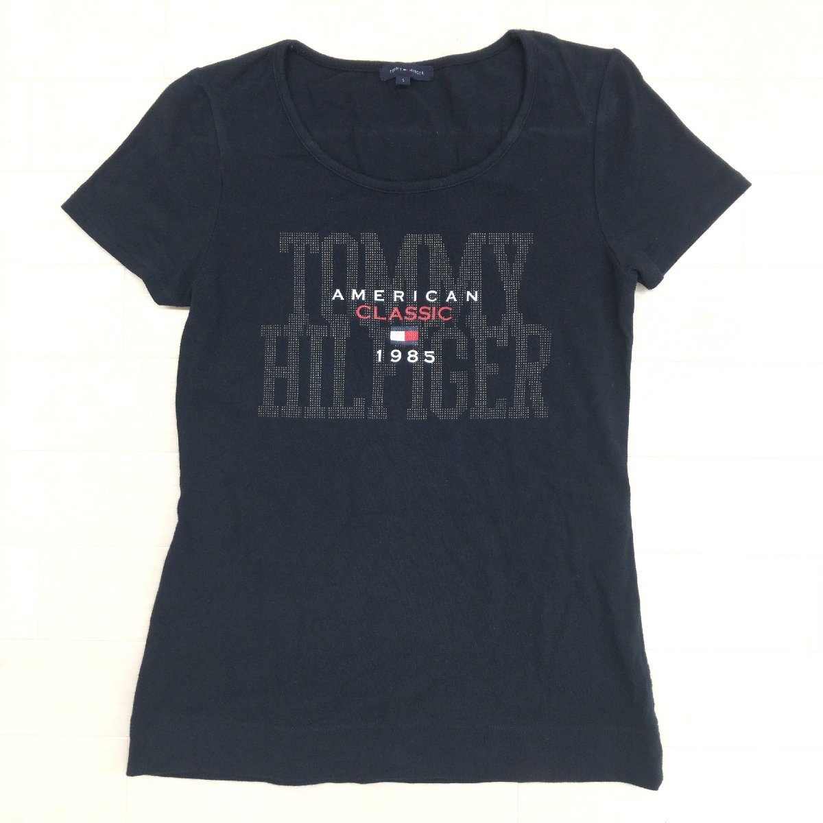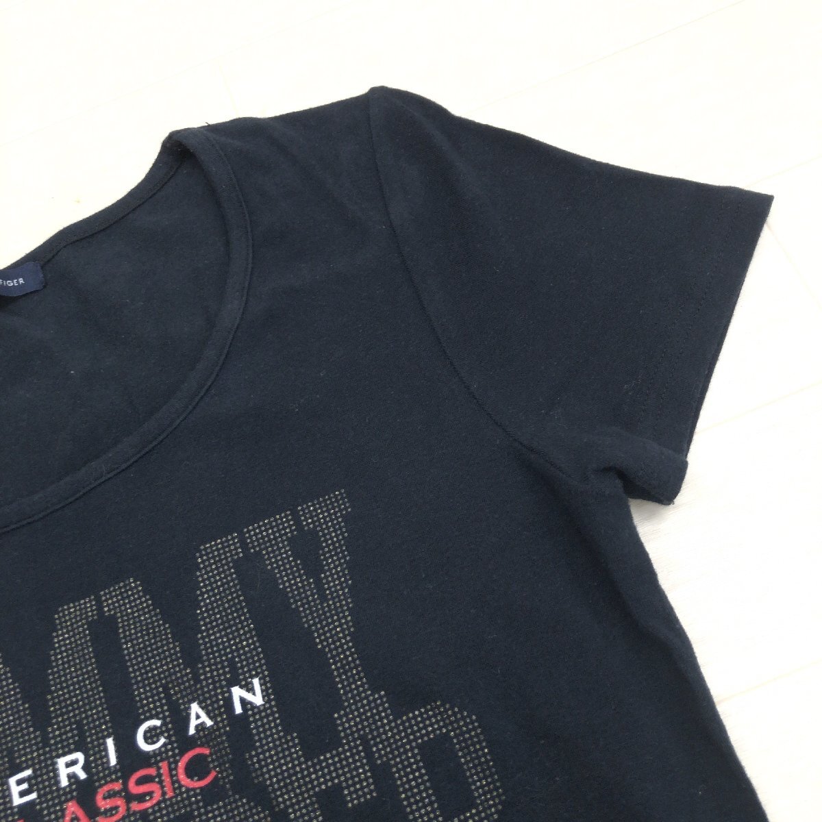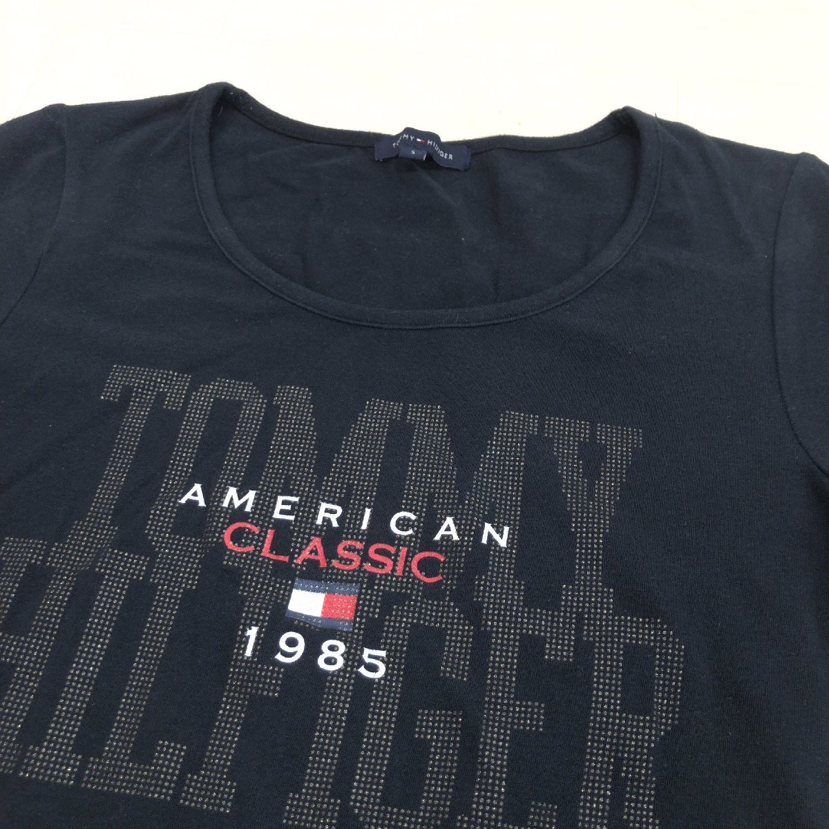 TOMMY HILFIGER トミーヒルフィガー オープンネック ストレッチ コットン カットソー S 黒 ブラック Tシャツ 半袖 レディース y2k archive
