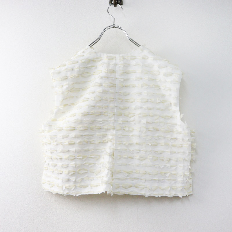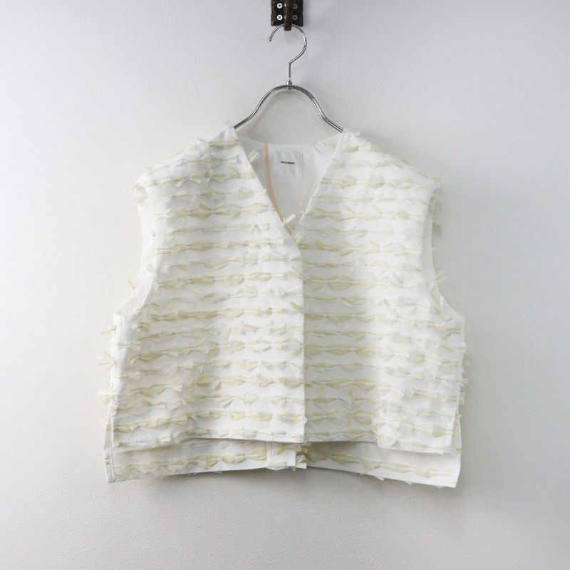 美品 2023 定価3.6万 yori shirocon ヨリ シロコン ミニリボンショートジレ 36/ホワイト ベスト ショート丈 【2400014521115】