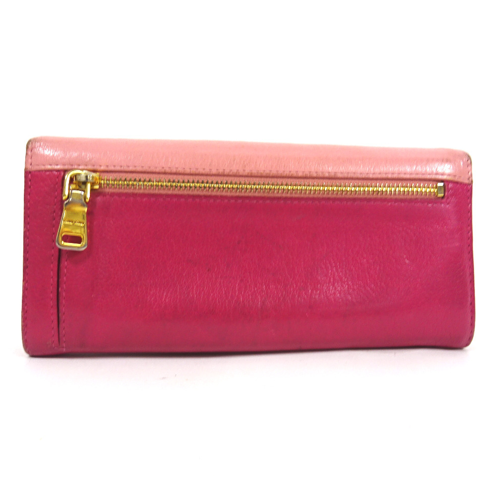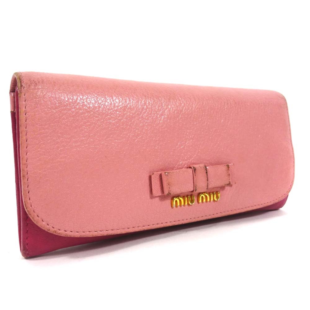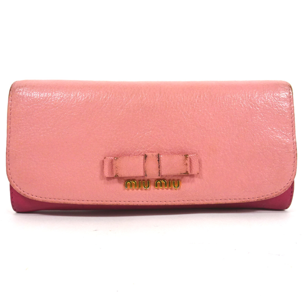 ミュウ ミュウ リボン バイカラー 長財布 レディース レザー ピンク ゴールド金具 中古 Miu Miu